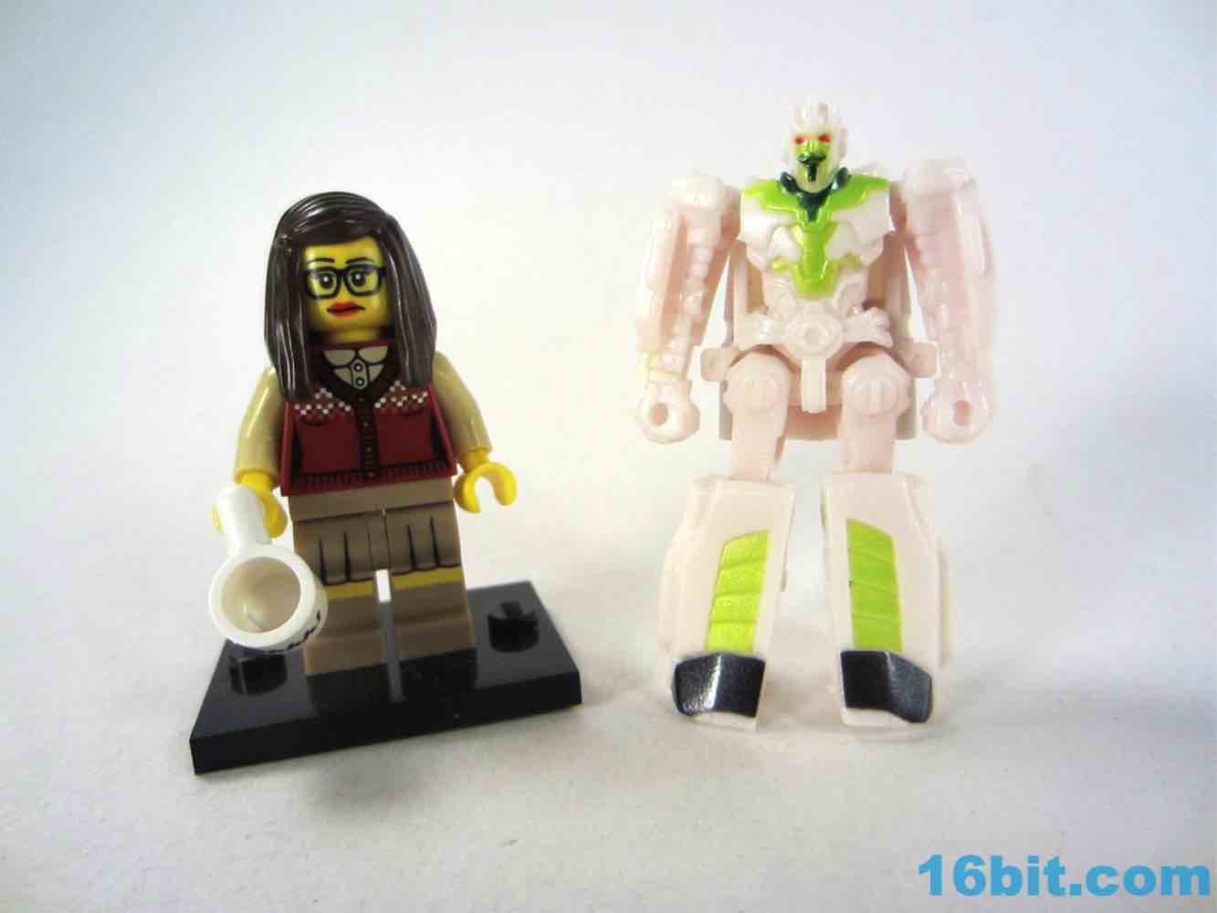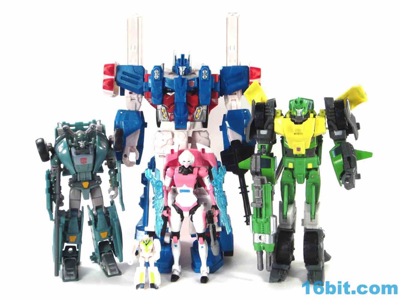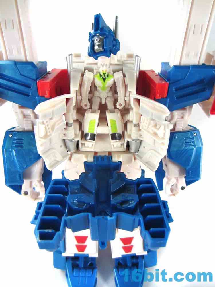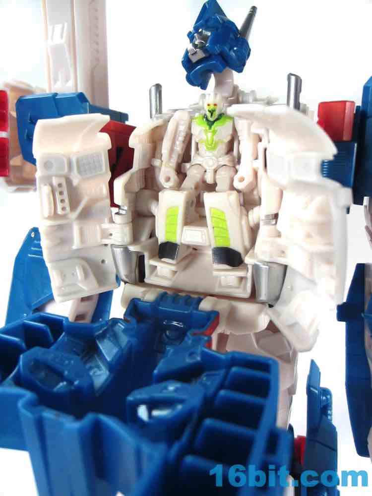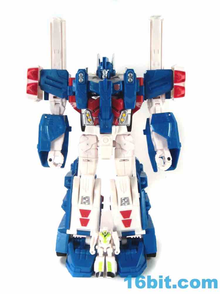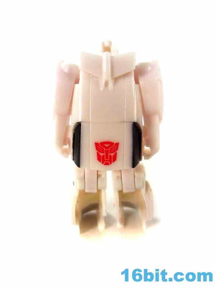 Minimus Ambus is basically the size of the "Micromaster" sidekicks from a couple of years back, a tiny toy with great paint and no wheels. The hovercar turns into a robot, which fits in Magnus' chest perfectly. The little car doesn't really fit on the car carrier mode, but it does have painted windows and just enough green to be interesting. The fake facial hair amused co-workers to no end, and it's a fun twist to the tradition of the armored white Optimus Prime. For five bucks, you'd probably happily buy one of these - but with no wheels or accessories, he's not a lot of fun without the bigger toy. The paint on mine is perfect, and the figure's transformation is simple and intuitive. There's not a lot of detail here, but it's worth mentioning that the head sculpt and deco is exceptional for the size. I expected more slop, and did not get it.