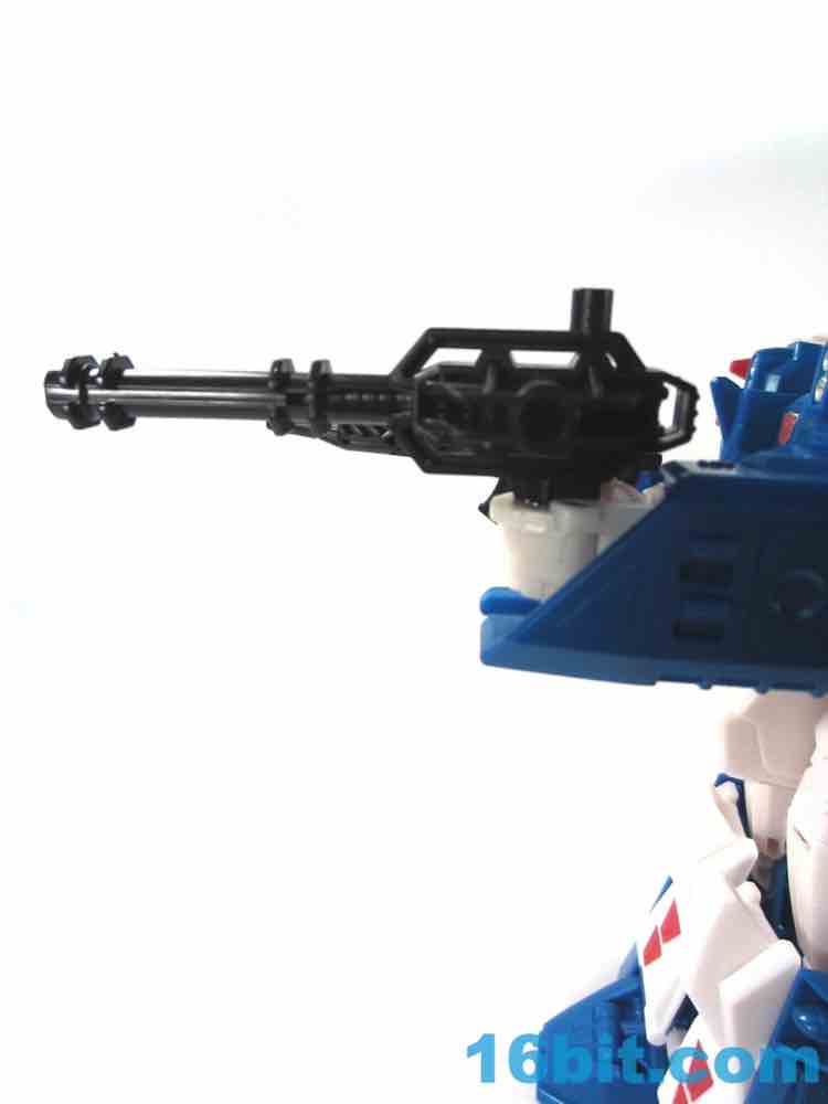 Our hero has about 15 - or more, depending on how you want to count the ankles - points of articulation. He's covered in vents and various greebles, making him a worthwhile purchase. The look is modeled after the aforementioned comic for the most part, which means you get giant shoulder stacks and a helmet that looks sort of like he's wearing glasses. The articulation is largely quite tight, and in some spots it may cause some parts to not fit together perfectly - my right shin panels don't fit together perfectly, and the left thigh will pop loose if you rotate it. It's easily fixed in the case of the thigh, I'm unsure if the shin is going to be easily fixed. Even with the problem on my sample, it's still a pretty stunning figure in the sense that you get articulated fingers and guns that can combine into a giant hammer. Those hands don't hold the weapons as well as a 5mm fist might, but it's pretty solid - just don't wiggle it around too much.