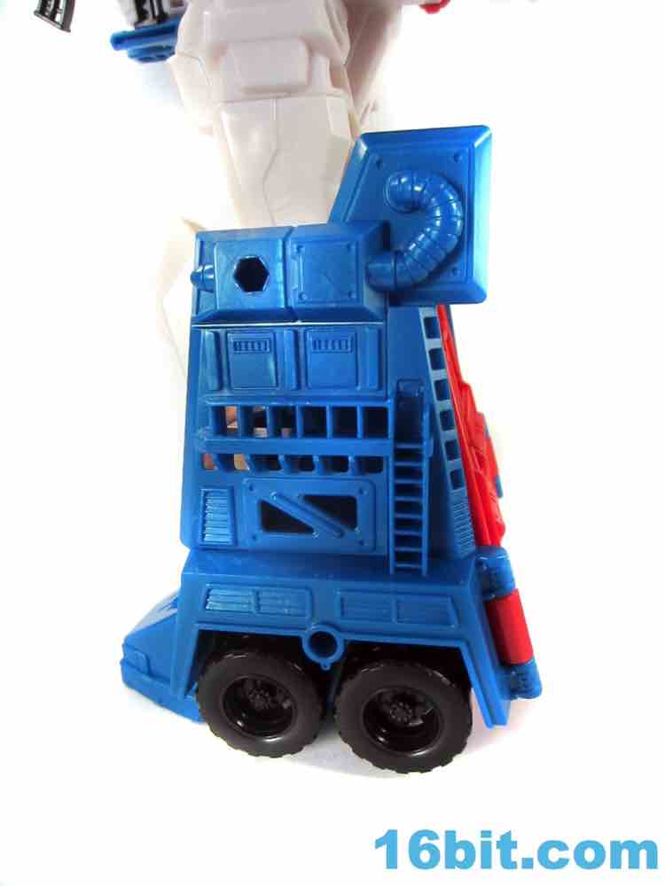 Transformation is fairly involved to get to the truck mode. Based on the size of the ladder and door on the side of the cab, this is a huge truck - possibly several stories tall. With rolling wheels and no painted hubcaps, it's a decent transport for your Legends (or Scout) vehicles like Swerve or Tailgate. The ramp folds down to allow you to roll in the cars, but it's clearly not meant to be a great vehicle mode - this toy is all about the robot. The non-detachable cab is nicely done, but it's clearly a trailer made out of robot parts. It's a great change from the traditional white-cab-in-armor we usually get, mostly because that if you discounted Ambus it's just a normal transforming toy. If you lose him, it's still a valid toy robot or truck.