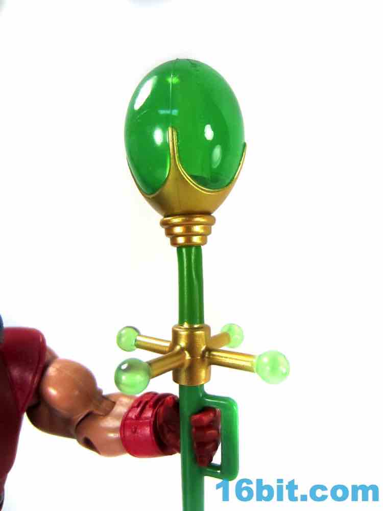 His hammer is big and bulky with a rubbery grip and lots of paint. It looks like metal, and I assume over time it may cause the handle to sag a bit depending on how you have him displayed with his accessory. It's joined by the comic version of the Staff of Avion - I assume there must be more versions, I feel like I have too many - and it's cast in mostly transparent green. The gems are clear, the rest is opaque with some gold painted detailing. A special grip was added to ensure Stratos has no problems holding this accessory, but Stratos is pretty spoiled as it is. It's another nifty accessory, but the nitpicker in me always wishes for something a bit more universal so I can throw it with more than one specific figure. (Or maybe it's my fault for only buying the one Stratos.)