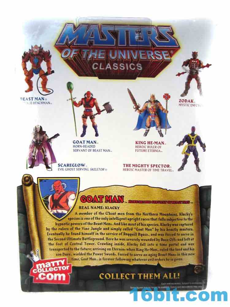 Mattel's Matty team has treated this brand pretty well, as this level of depth is tough to get without a reboot or a top-tier license. There are precious few deep cuts like this in other collector lines, so it's kind of amazing that Mattel could be convinced to do something like this in the first place. Novelty goes a long way in this line, and from the purpose boots to the black faux leather bondage straps, everything was executed consistently with the line's output. It's not bad, it's not amazing, and unfortunately with the lack of vehicles and playsets, it's sort of homeless. At this point we're a spoiled group with so many great figures, I don't even know where to put them. He looks way more eviler than Skeletor, but we know who's boss. If you have the boss, go ahead and get Goat Man - but I suspect there is absolutely nobody who would be excited about this figure who didn't make the decision to buy it within three seconds after it was announced. Nice job, Mattel, and keep on keeping on with that victory lap.