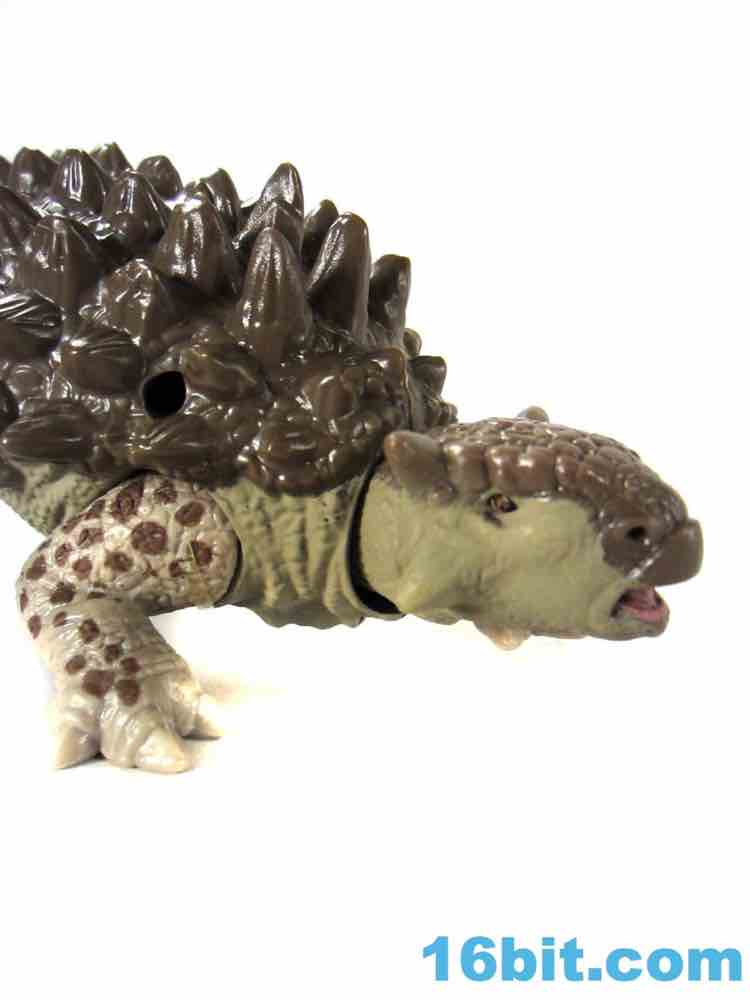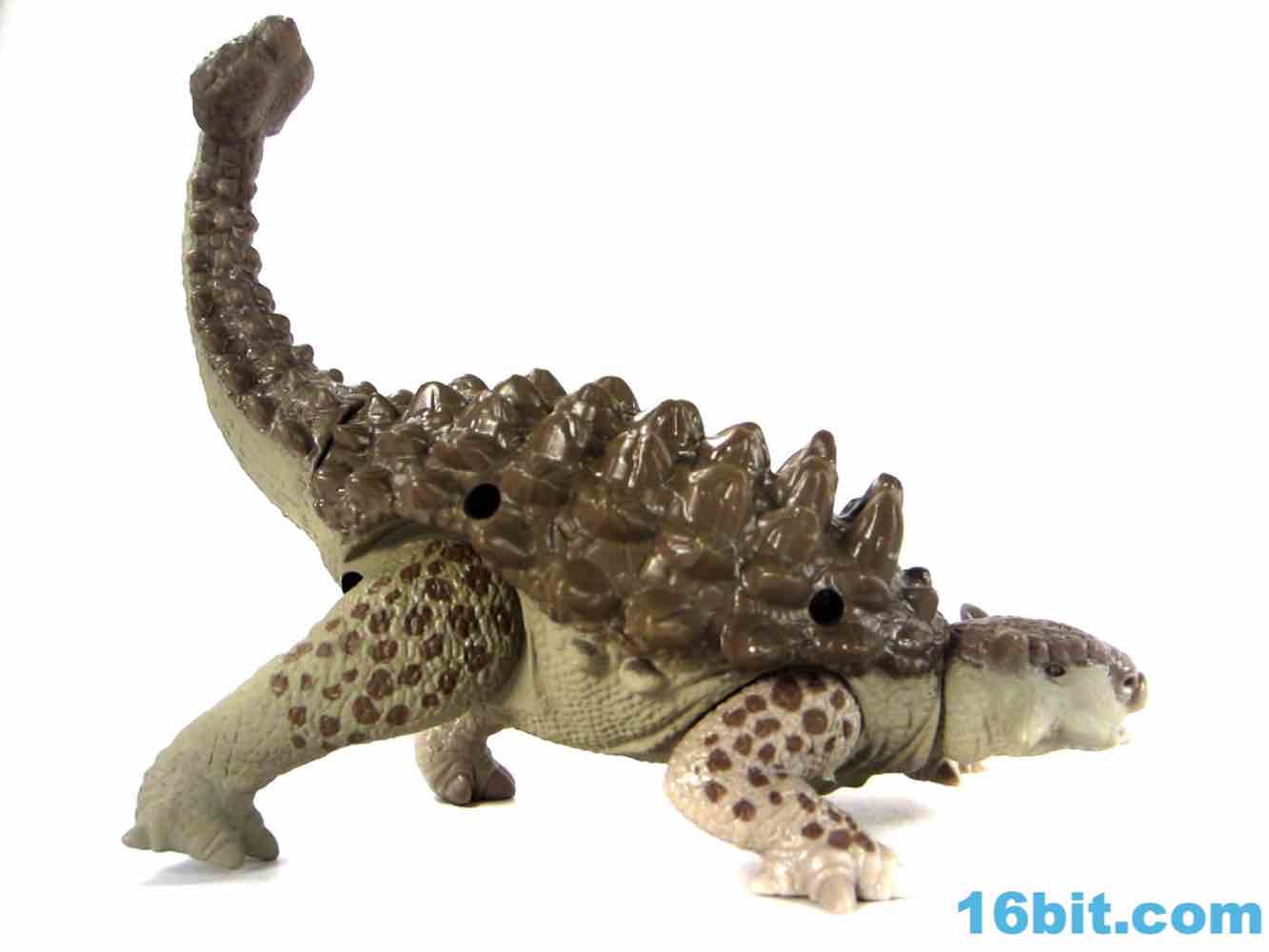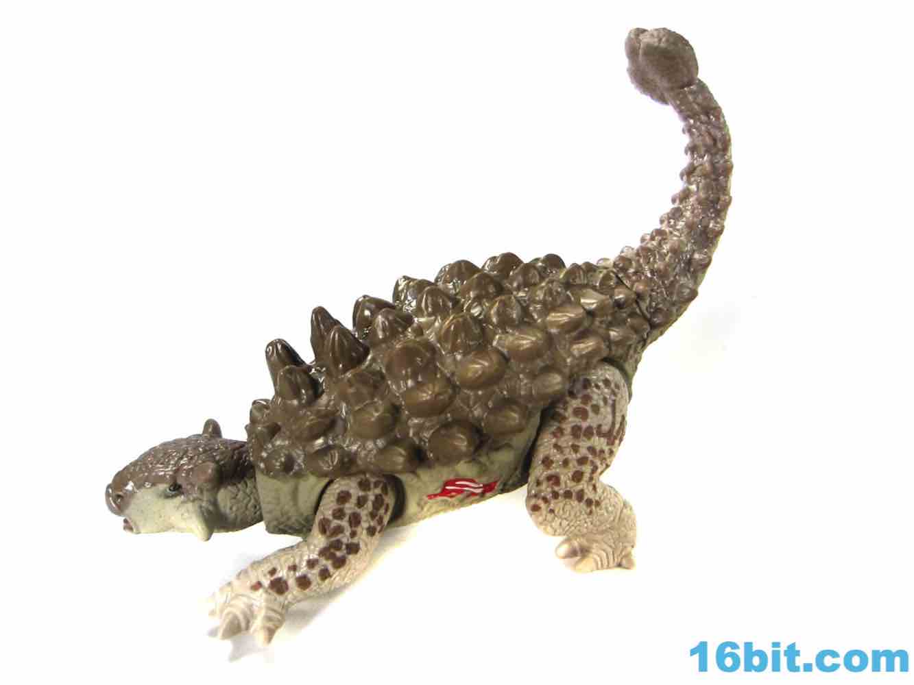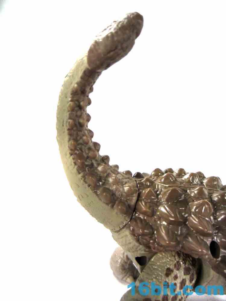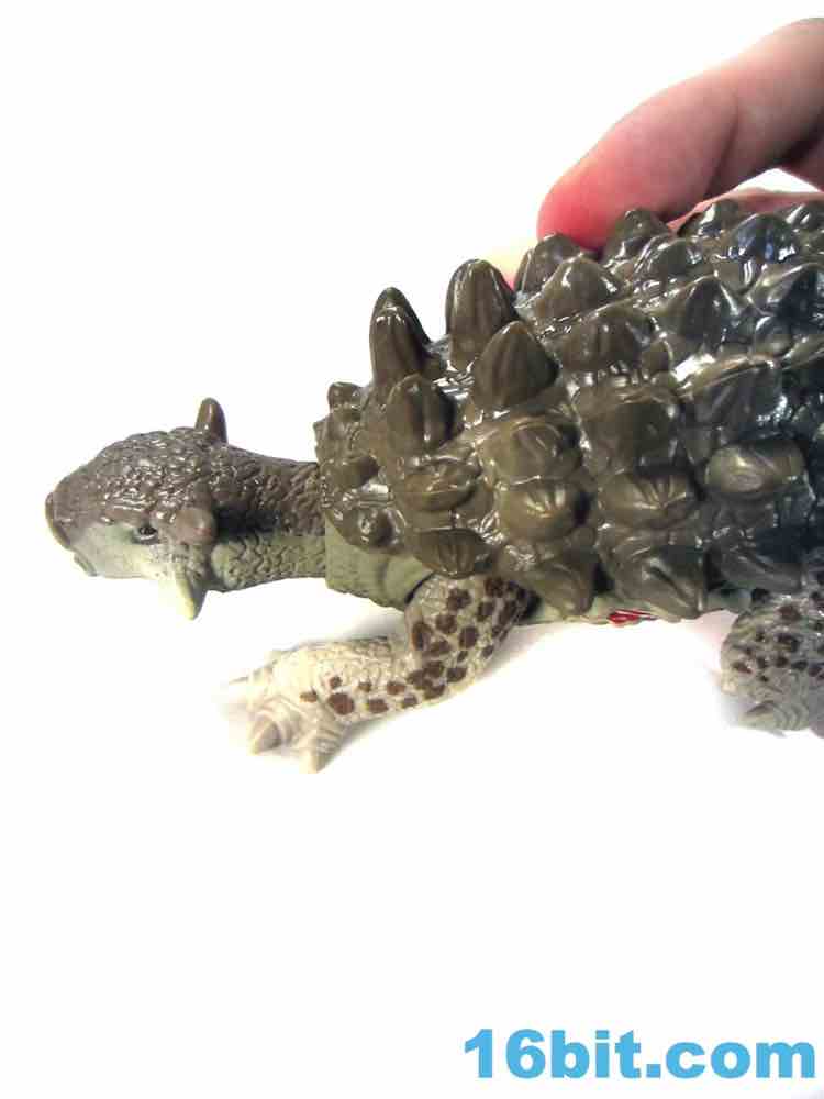 This particular creature didn't get a ton of play with previous movies - sure, we got the Ankyloranadon and the die-cast metal one plus a hatchling, but not a lot else. Posed to attack, or perhaps present itself to a mate, the big shell looks pretty sturdy but I assume you could crack it with a rock. (So don't do that.) Three of the four legs are jointed freely, with the back left leg activating a nifty dual-purpose mechanism. Swing it forward, and you get a head-butt. Swing it back, and the tail comes down to bash things.