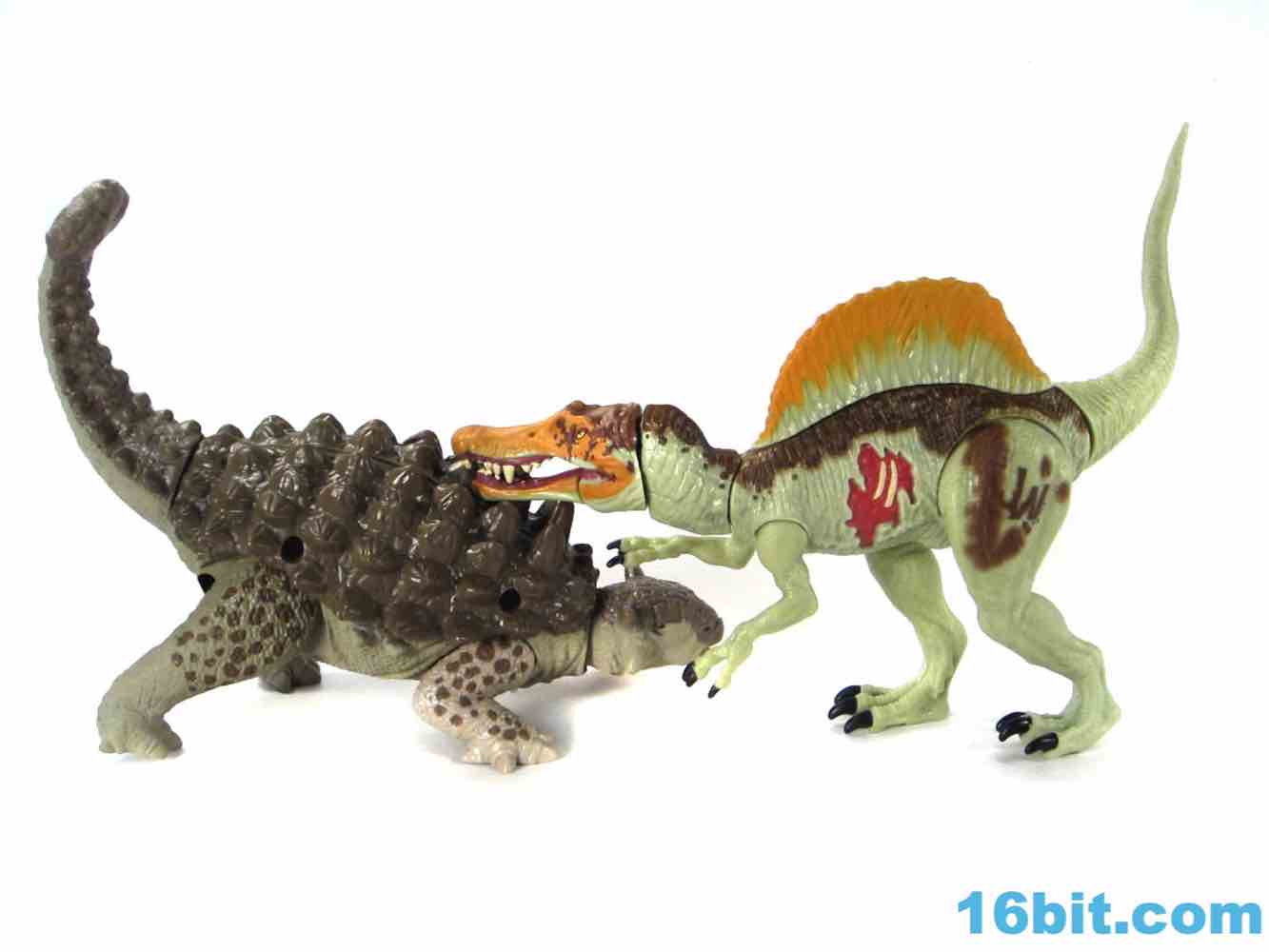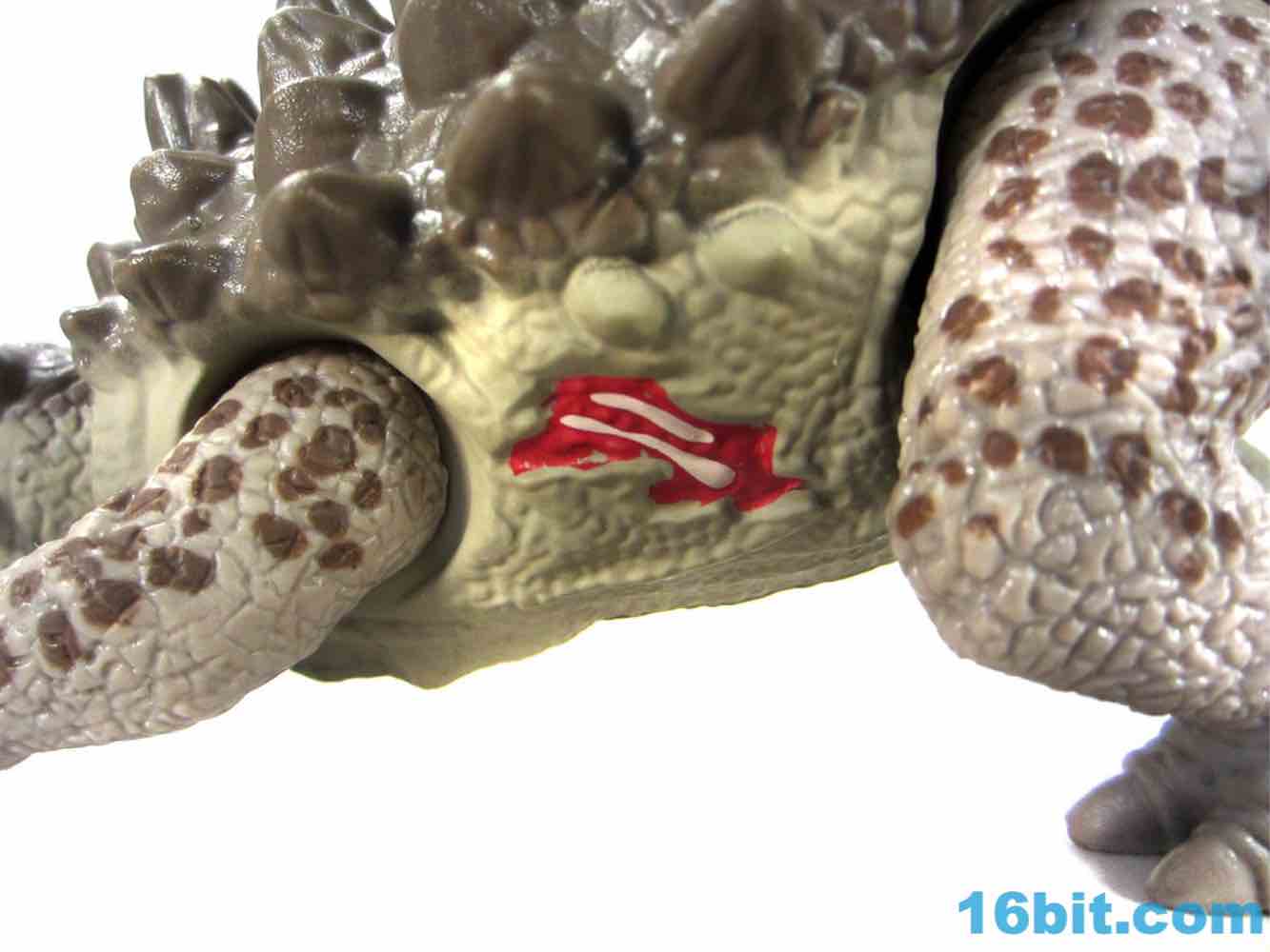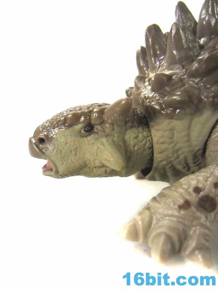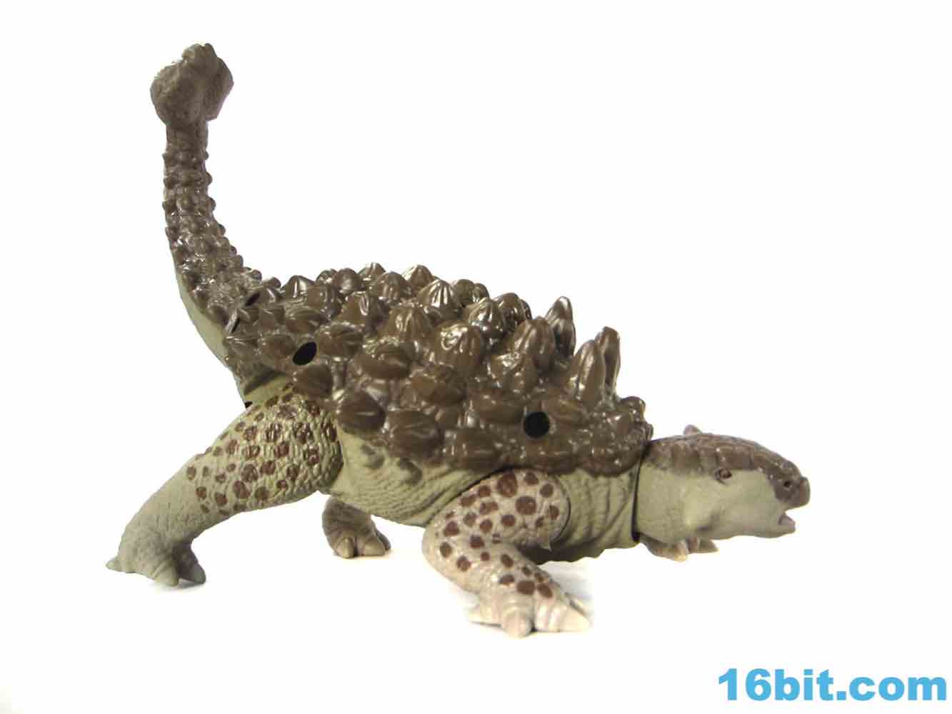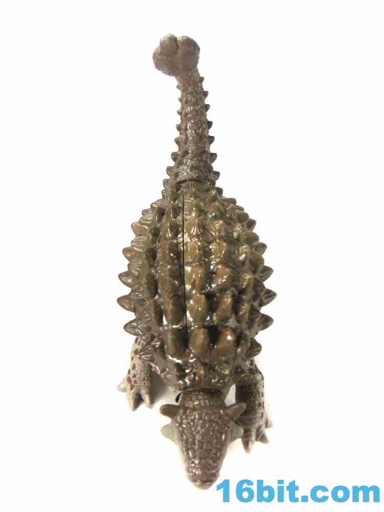 This particular creature didn't get a ton of play with previous movies - sure, we got the Ankyloranadon and the die-cast metal one plus a hatchling, but not a lot else. Posed to attack, or perhaps present itself to a mate, the big shell looks pretty sturdy but I assume you could crack it with a rock. (So don't do that.) Three of the four legs are jointed freely, with the back left leg activating a nifty dual-purpose mechanism. Swing it forward, and you get a head-butt. Swing it back, and the tail comes down to bash things.