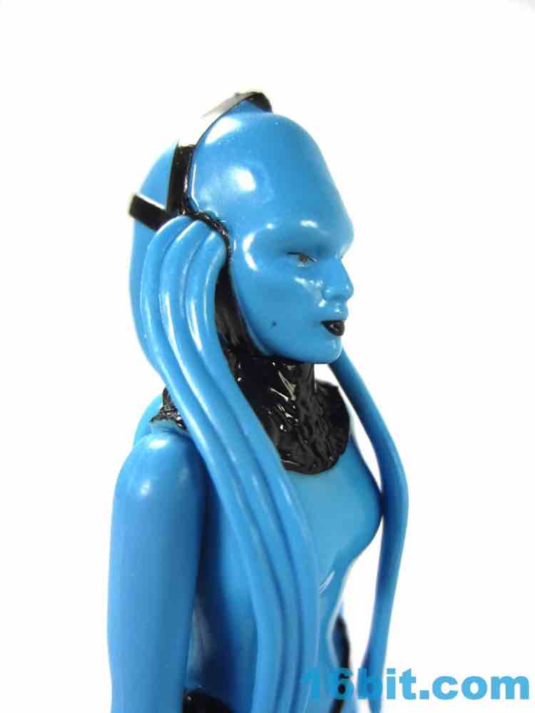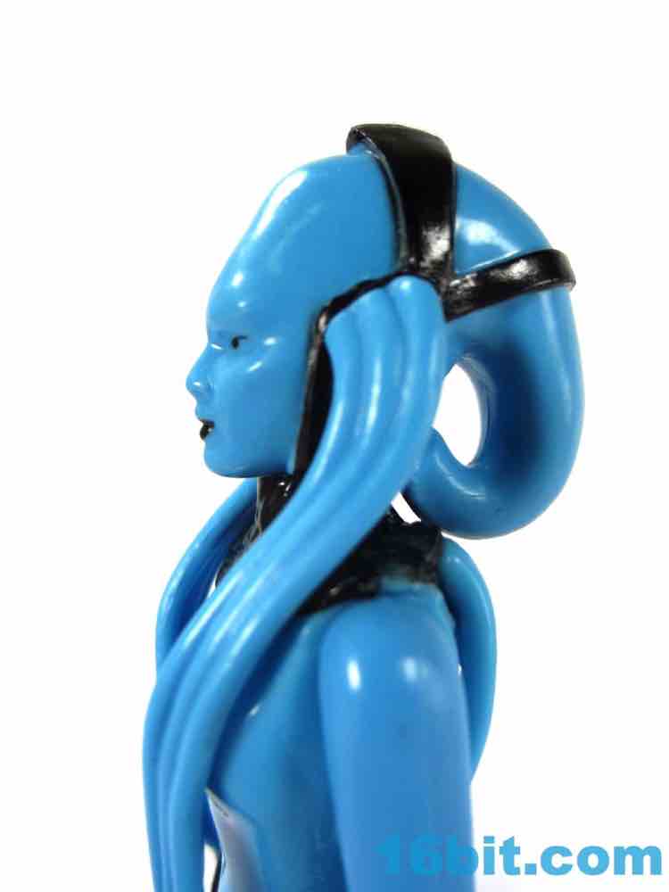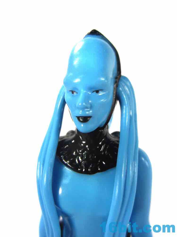 What really struck me about this one was the execution in deco, which is an area where Funko hasn't been able to nail the shiny feel of an old Kenner figure. They got it perfect here, thanks in part to the kind of figure this is - when you have an alien that's all blue and you can't really tell where the dress stops and the skin begins, it's perfect. The shiny blue plastic has painted fingernails - a deco point we wouldn't have seen in the old days - and limited black on her belt, neck, wrists, and head. The eyes and lips are positively perfect, with the flat and simple outfit really being the perfect example of what ReAction figures can be.