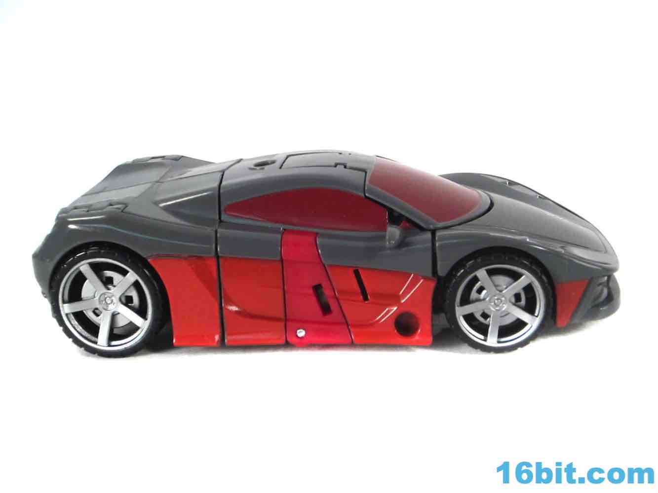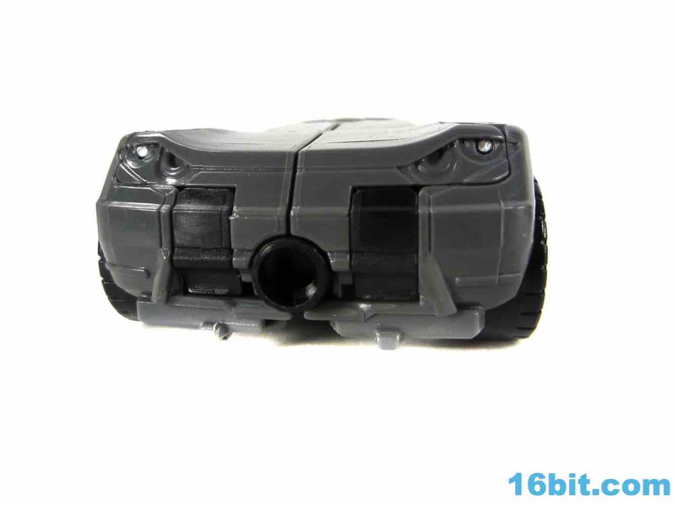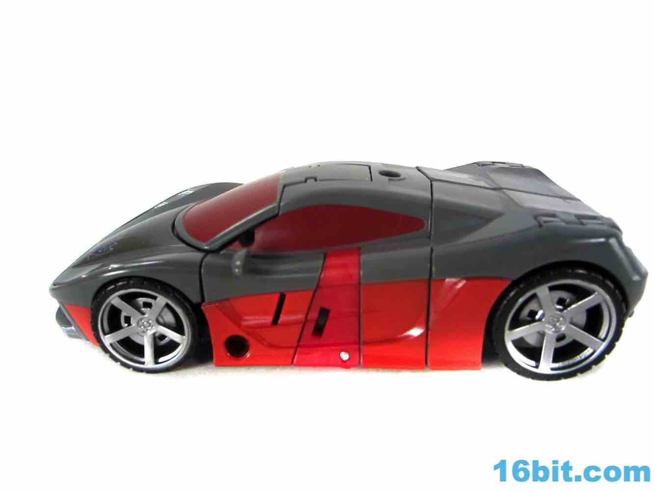 As a car, Brake-Neck works as a great combination of Offroad's colors on Dead End's chassis. No obvious mold changes were made for this car, but you do get niceties like painted wheels, headlights, and that silver hood for some reason. The red stripe of Offroad's, er, "bolts" is now an enormous red stripe which blends in with some unpaintable red plastic that is a bit of an eyesore in this mode, but it's not a problem from where I sit. The exhaust pipe weapon plugs in to the side of the car - it's the same one Dead End got - and the Decepticon symbol pops nicely as do the red windows. For a same-mold figure, it's a good one.