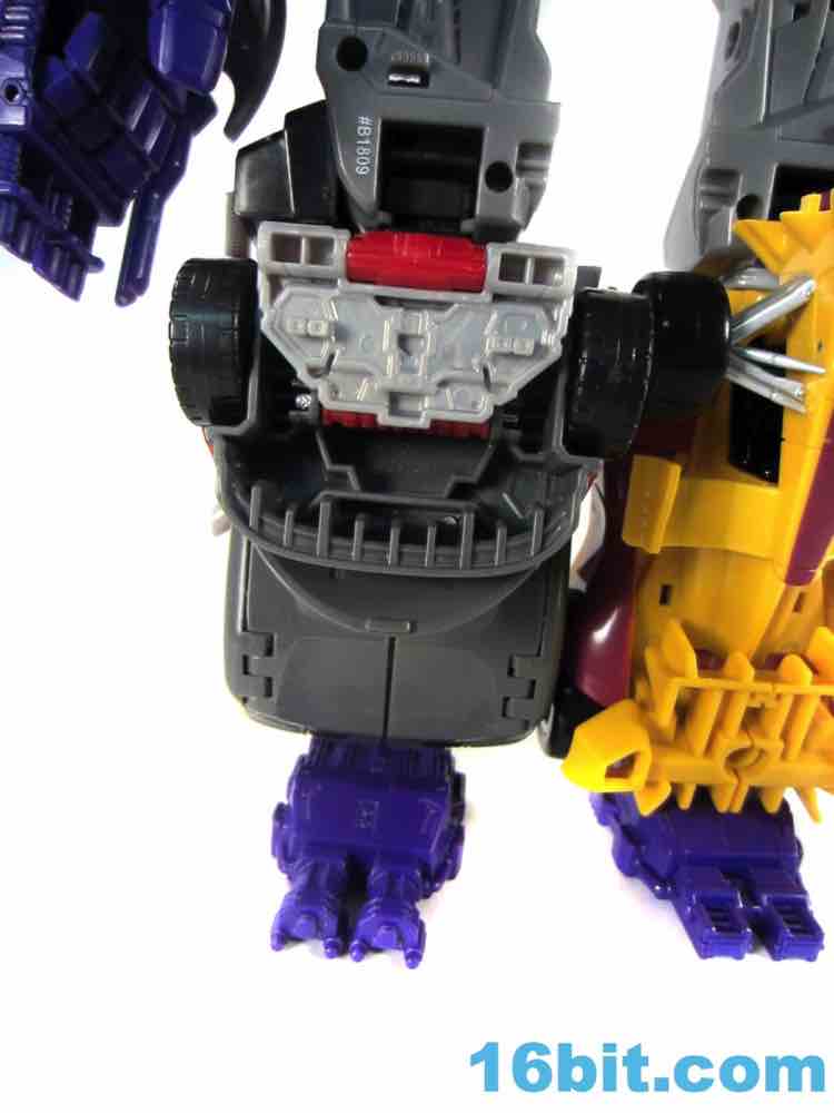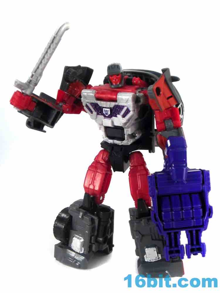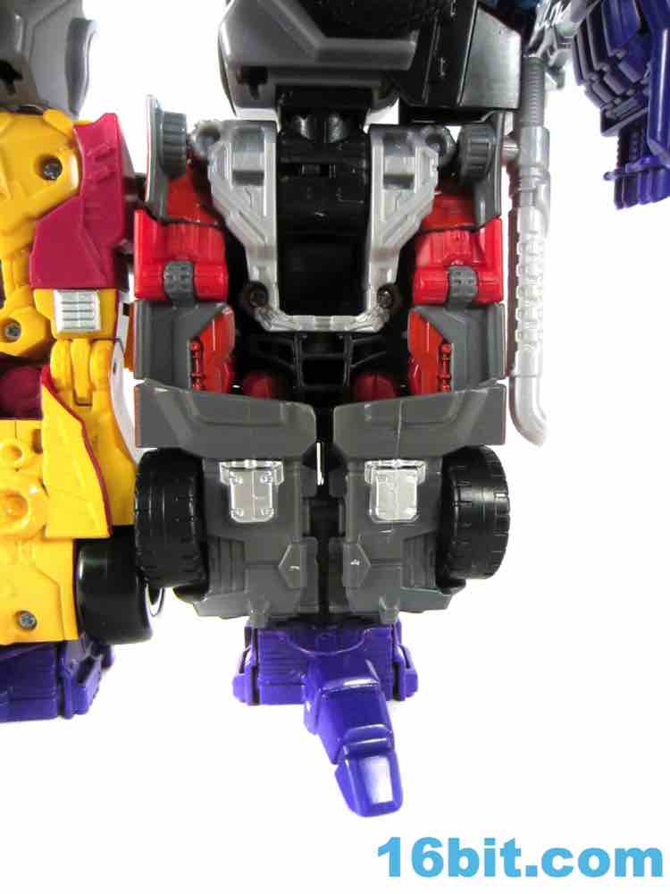 Thanks to the versatility of the designs in this line, molds like this can be used for a pretty good leg or arm. Or other characters - it's widely expected that this car will be reshelled, repainted, and reheaded a few times to multiple characters. By and large it works well so this shouldn't be a problem - the leg is basically a car with some of the front hacked off, and the arm is a car contorted into an arm shape. Sure, some car bits hang off the side as an arm, but that's the charm! You could say it puts the arm into charm, but that just comes off as smarmy. Instead, let me just say that the robot mode's waist, hip, and knee joints pay off huge dividends when it comes time to give Menasor extra arm articulation. As a leg, you'd get the same amount of added articulation from a brick. That's no fault of this mold, just how the Combiner Wars designs pay off.