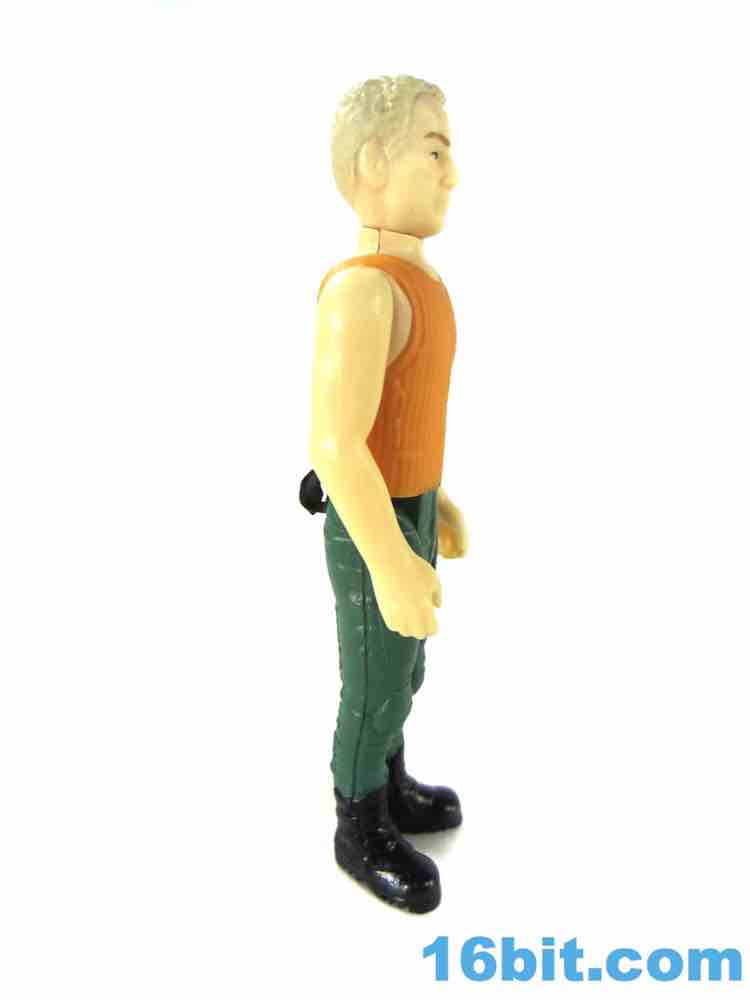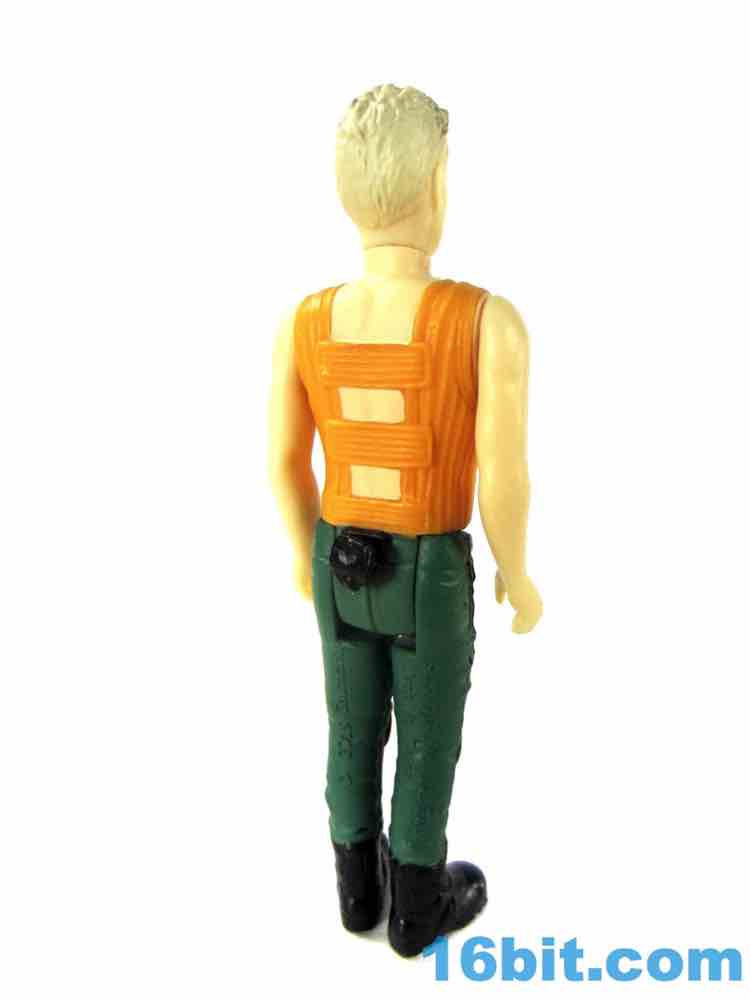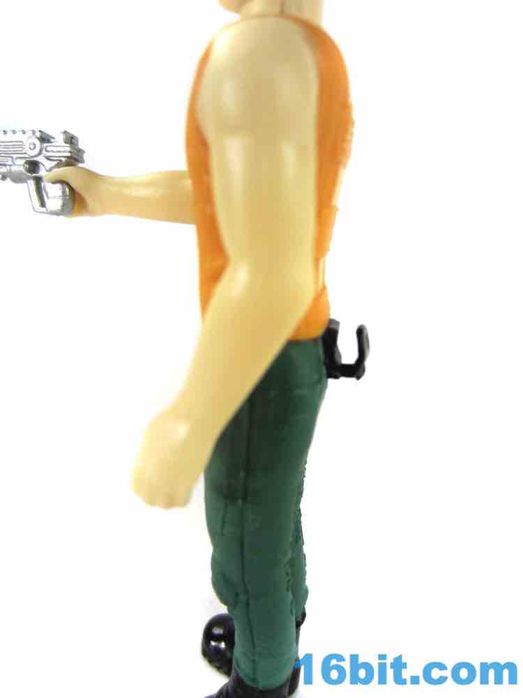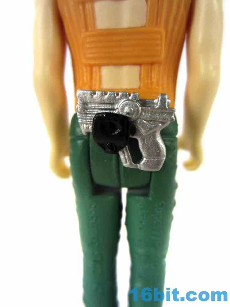 As with some of the others, the cuts in the hips are weird. He has no problems standing or sitting, but there are big gaps below his crotchial area to allow for leg clearance. This sort of thing was kind of uncommon on old Kenner figures, as the figure has ample, visible clearance between that body part and the legs. You can see daylight. The pants also have a strange texture due to their being painted, but they certainly look nice as his hips rotate and give you the strange, squared-off butt region when he sits down. The arms have no problems rotating or holding his gun - just like his pants holster.