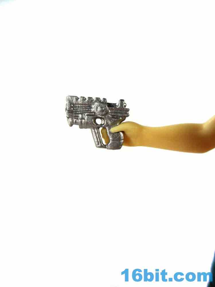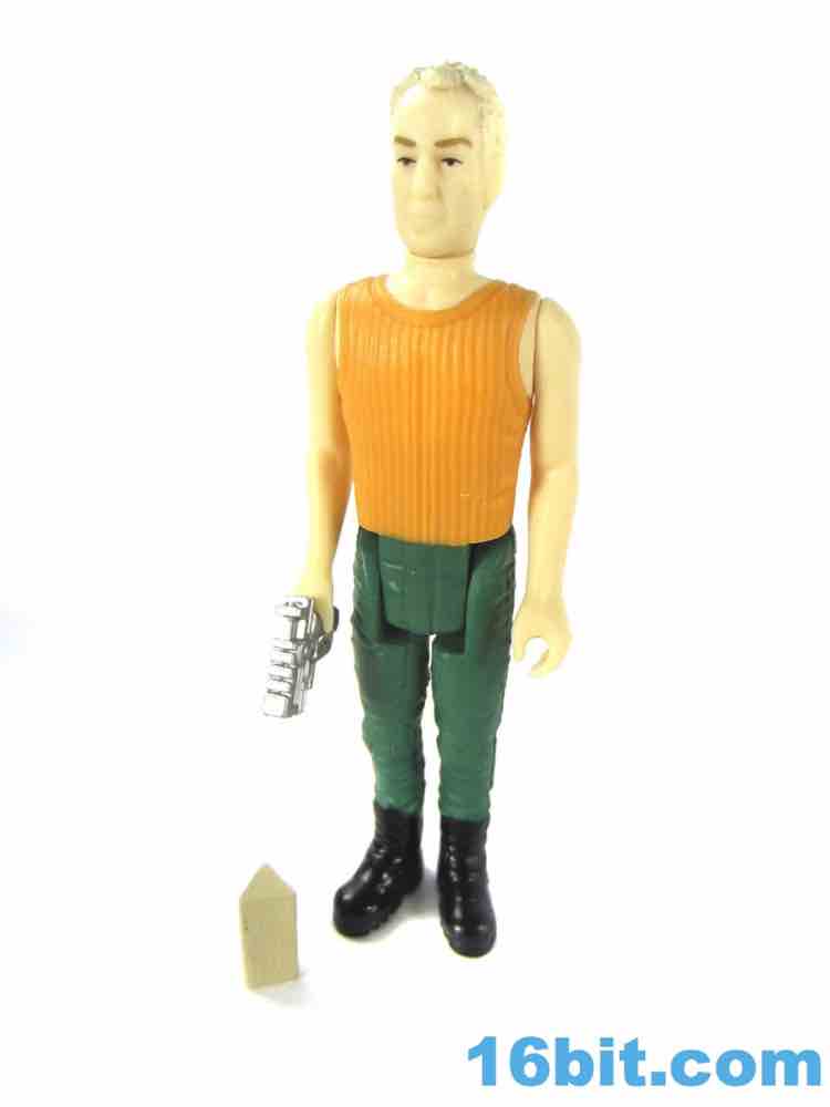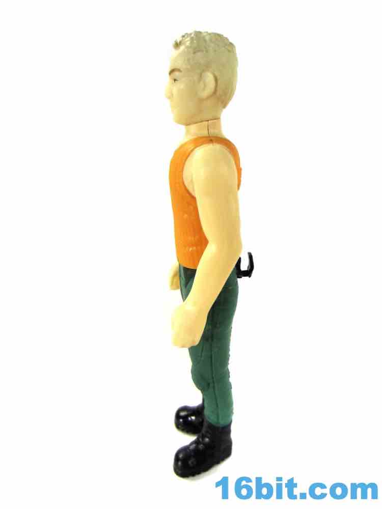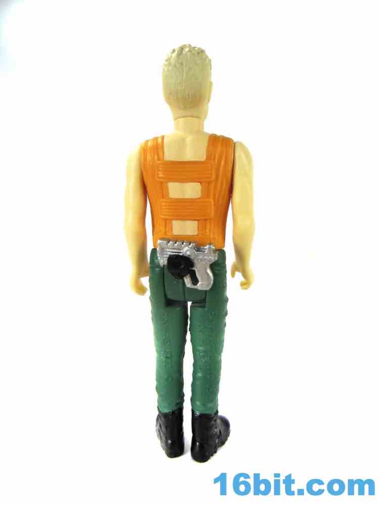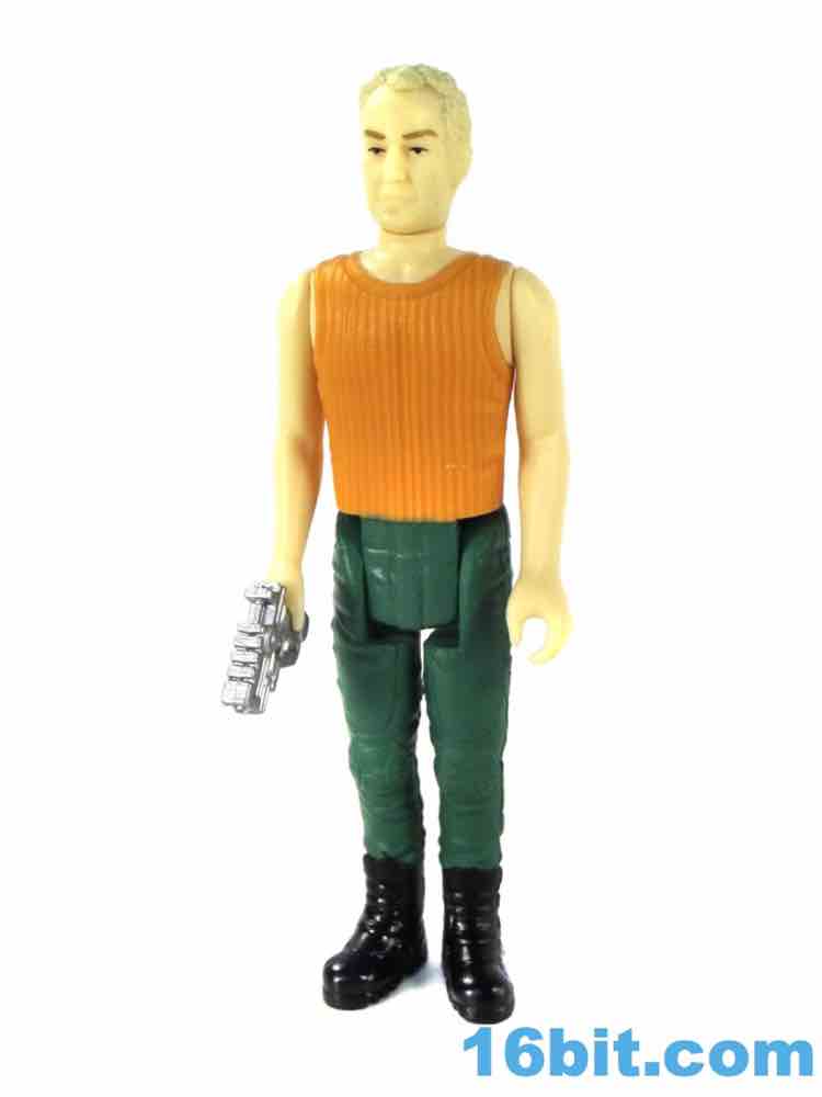 As with some of the others, the cuts in the hips are weird. He has no problems standing or sitting, but there are big gaps below his crotchial area to allow for leg clearance. This sort of thing was kind of uncommon on old Kenner figures, as the figure has ample, visible clearance between that body part and the legs. You can see daylight. The pants also have a strange texture due to their being painted, but they certainly look nice as his hips rotate and give you the strange, squared-off butt region when he sits down. The arms have no problems rotating or holding his gun - just like his pants holster.