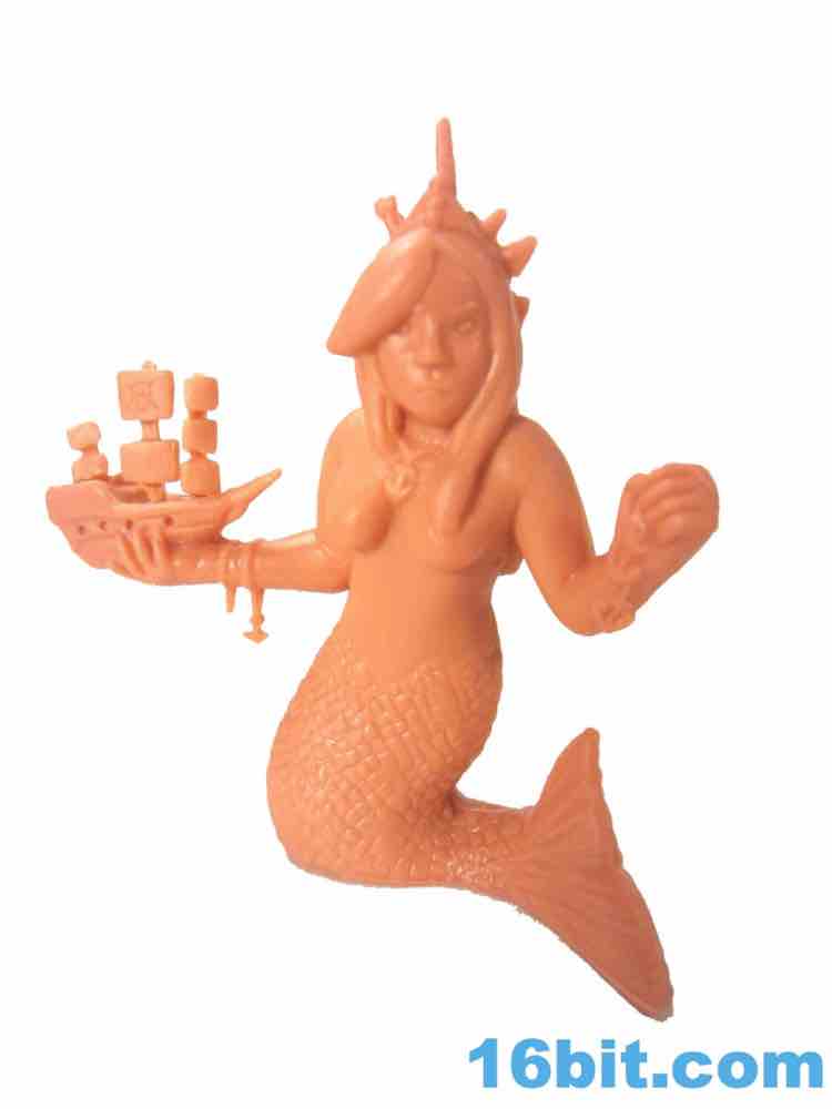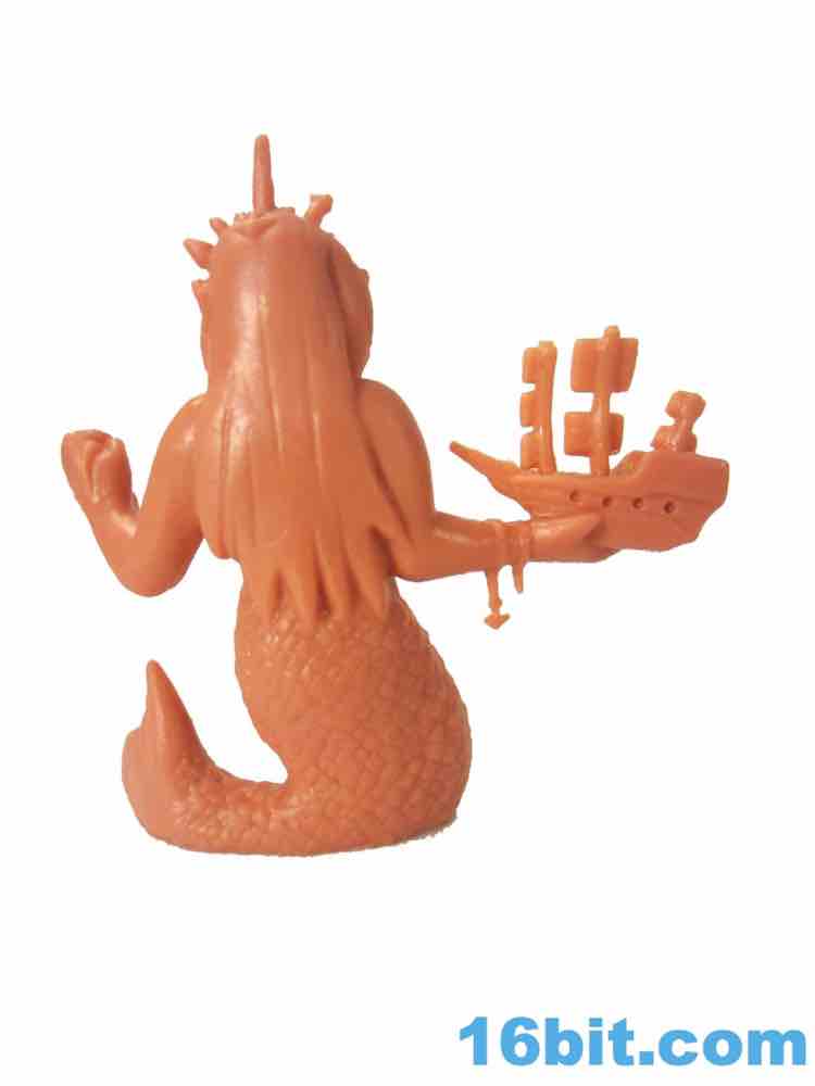 The 1 3/4-inch figure itself has a scaley tail as well as a pretty decent body - the proportions aren't too nutty, and the belly button is difficult to see unless the light hits it just right. The hair is sort of flat, and the face is a lot more in line with those classic M.U.S.C.L.E. figures. Mr. Gaspar's sculpt seems to carry the "simple" part nicely - it's all one piece of plastic, and it looks great. It has no markings identifying a manufacturer or sculptor that I could notice.