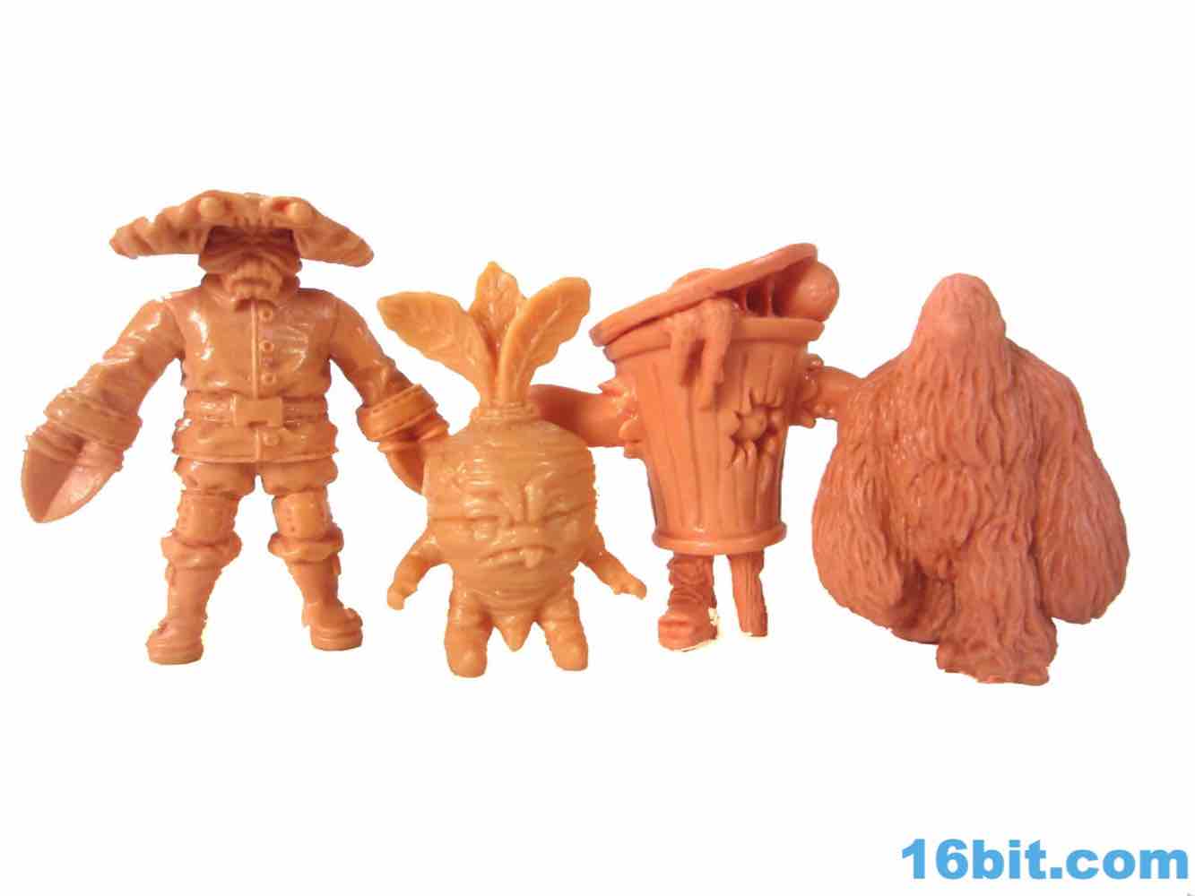 It's been a while. Outlandish Mini Figure Guys Series 4 are here after what feels like a very long break, as the last series hit my mailbox in October of 2013. Series 5 has yet to make it to Kickstarter, but the winners have been selected so we know who it'll be. But we're not worried about them yet - we have to look at these guys first. The set coloring is pinker than previous series, and #3 was the pinkest so far. It still doesn't quite match the intended M.U.S.C.L.E. color, but at least it's a decent color. For those paying attention, the intention of this line is an amazing one - the October Toys forum held a contest to vote on the five best original slug figure designs. The intent (which wasn't actually always kept) was to make a simple figure with no glued-on parts and have the line more or less top-to-bottom designed, made, and voted on by the community. On the whole they nailed it, minus the whole "one piece" part. With rising costs, this may be a problem for future series... but some of these guys are simple single-piece figures.