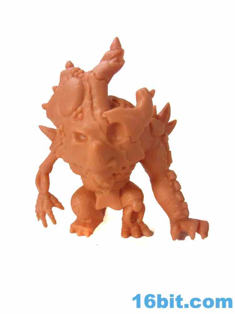 This one actually has some extra work done on the bottom of his feet, allowing him to leave prints in the dirt were you to take advantage of such a thing. He's covered in wrinkly skin with hints of hair on the legs, plus the tail is, of course, quite hairy. The horns are pointy but soft, so hopefully nobody will get impaled on them. It's a striking design, and a great monster for this all-monster set.