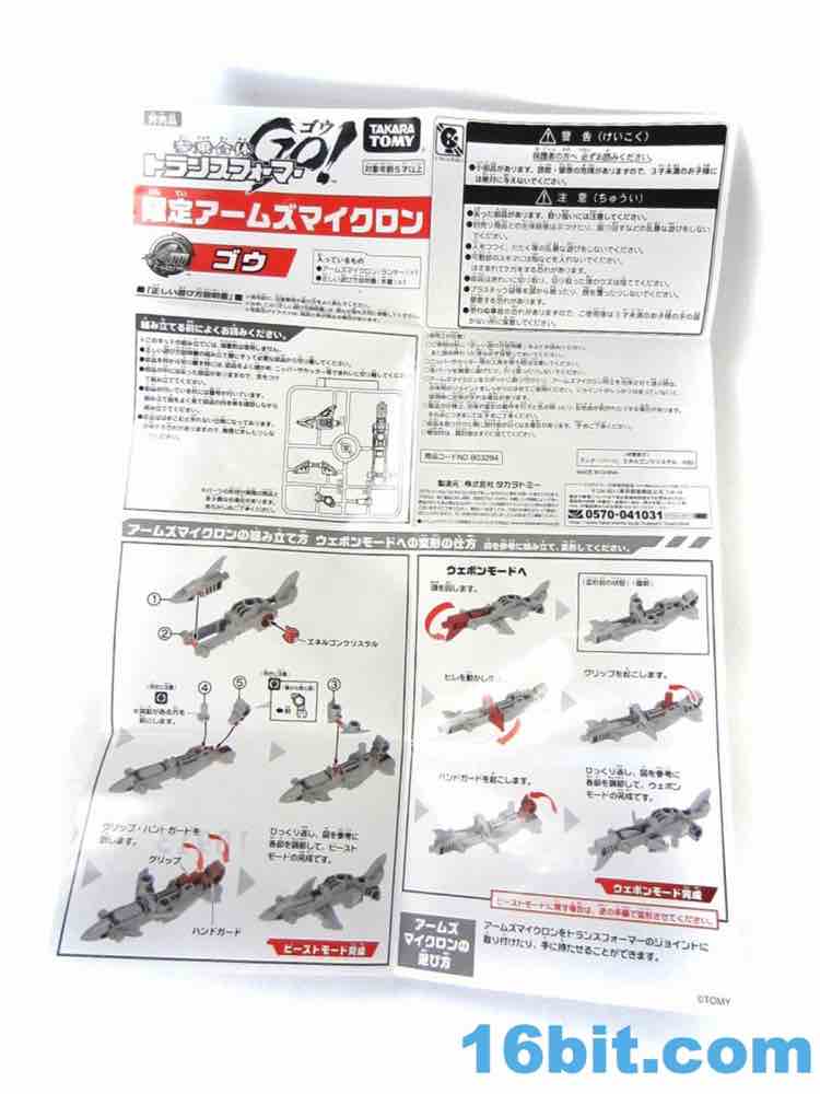 While Transformers Prime lacked a unifying collectible. In Japan it became loaded with Arms Micron toys - sprue-based, paint-free Mini-Cons requiring assembly and stickers to turn into neat little guns. Some were packed with toys and others were campaign toys. Go is a free-with-purchase toy which I scored on eBay as part of a lot for about $8 delivered. It's totally worth it.