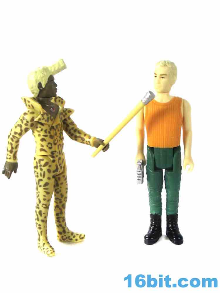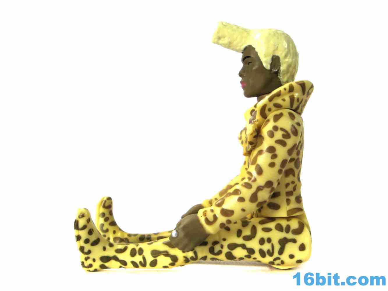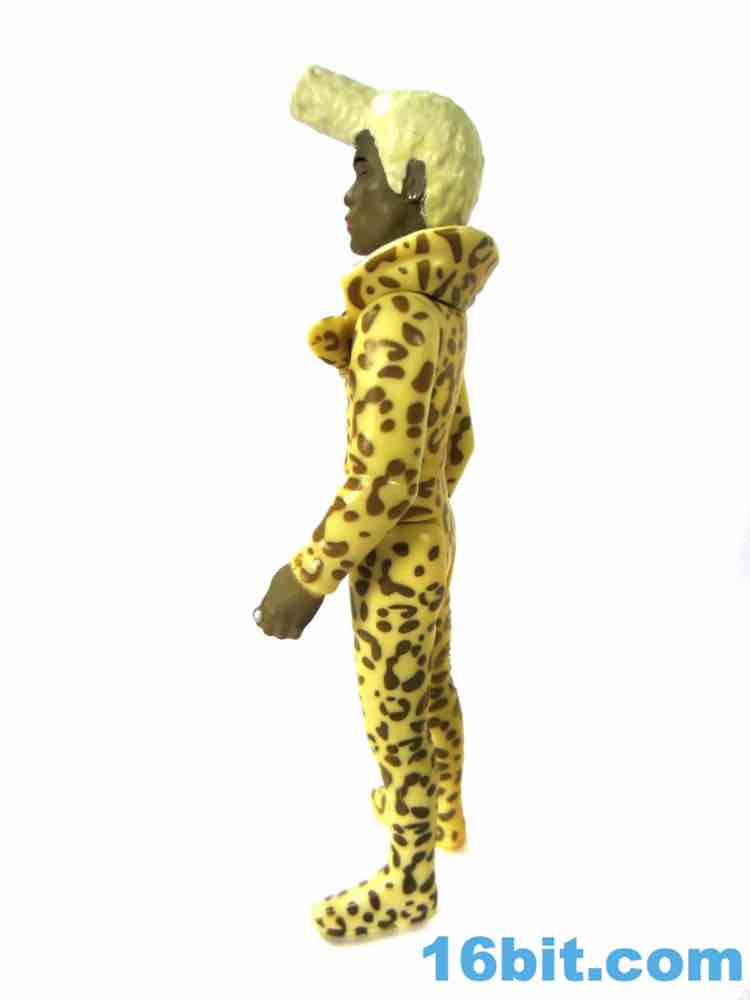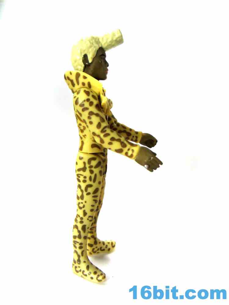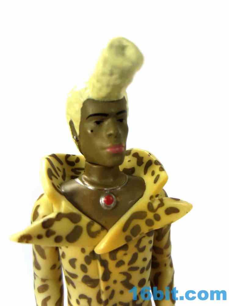 The sculpt is good, and it does a fine job of replicating the radio host's extreme wardrobe. The distant future of male fashion looked a lot like a variation on women's wear of the 20th century - big collars, a scooped-out neck, and leopard print were old hat by the time this movie came out. But on dudes? Well, this was new - the figure is molded in a tan color with lots of paint to keep the cat pattern consistent. This is something above and beyond what you'd get in this style of figure, as are the painted rings on his hands and the painted necklace.
