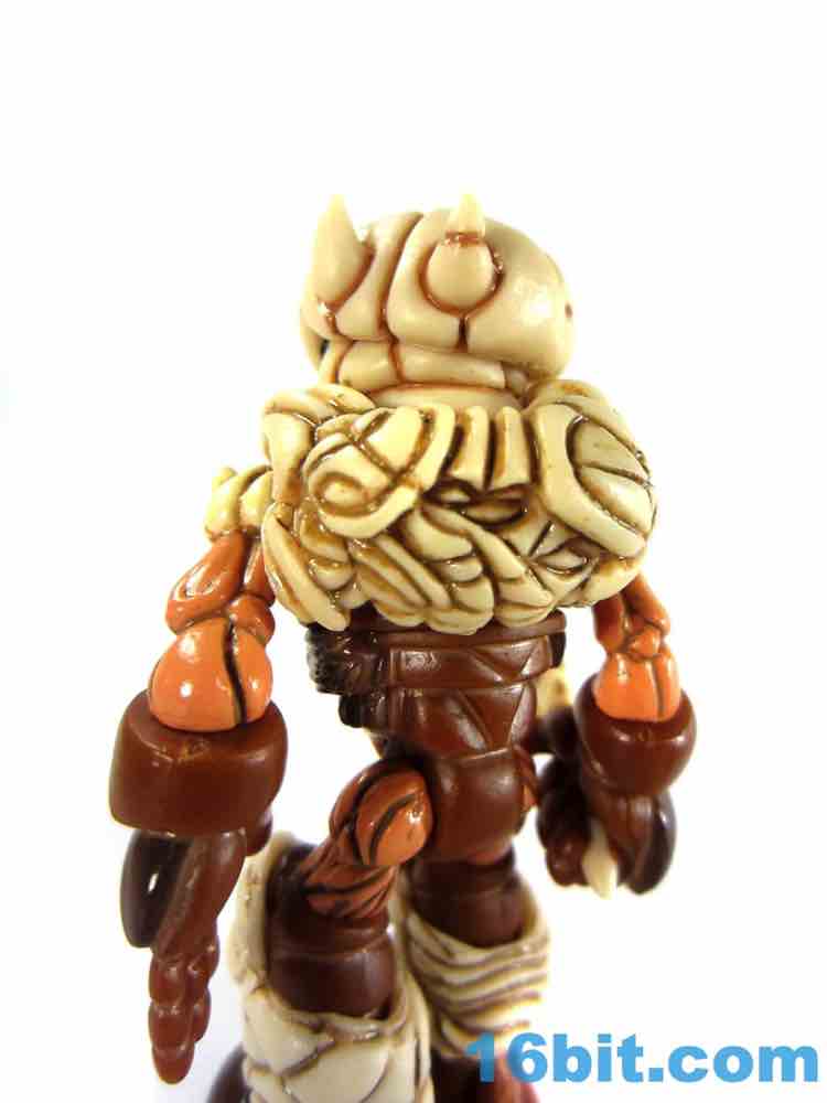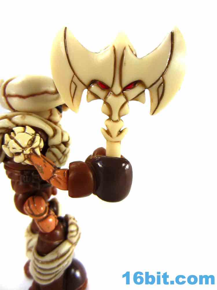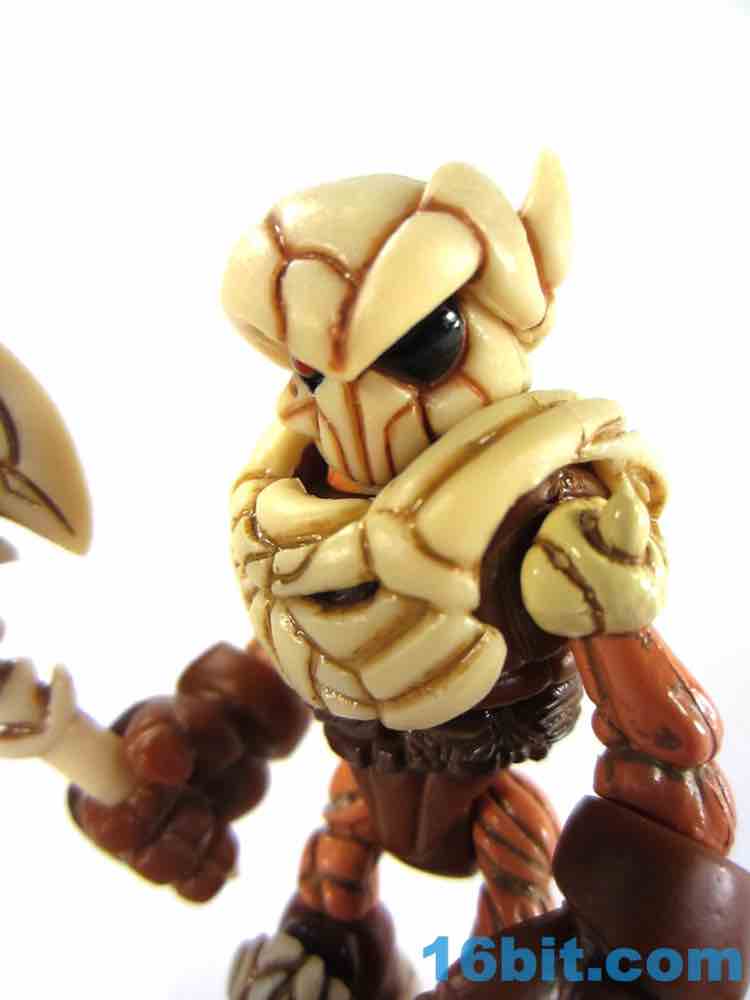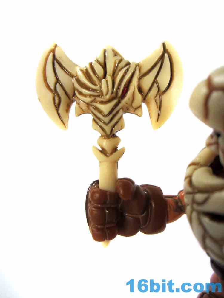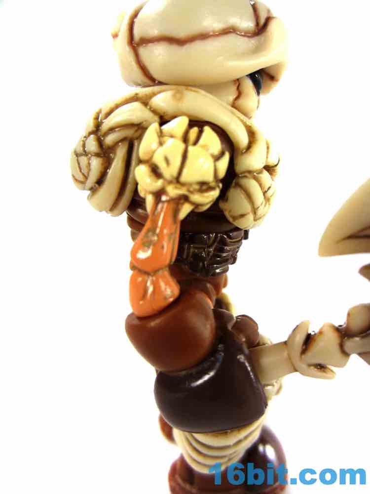 Being shown just how good a figure you've got may not be worth extra money, but in this case I'll make an exception. Standard Skeleden was a great figure - made of two colors of plastic, this panel line-free figure had a nifty bony color which, without paint, showed the various cracks and ridges quite nicely. The Ullcroth, though, is like a page of comic art given life. The arms are molded in bone color, but for some reason painted with a pink part for the biceps and elbow, bone paint on the shoulder, and panel lines over everything else. That seems excessive, but that's why it's $18. You also get brown patches on the hands and feet, in addition to the brown panel lines. The head is a departure in that it's all bone, with panel lines, rather than being half "fleshy color" like the earlier versions. It feels like a different figure, from a different era, all thanks to a little more paint and a lot more work applying said paint.