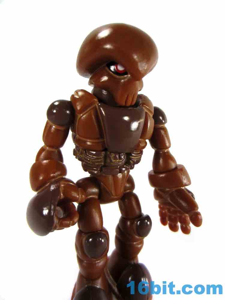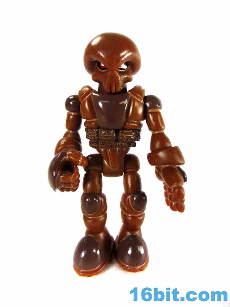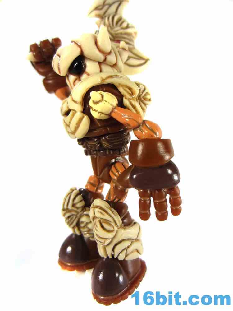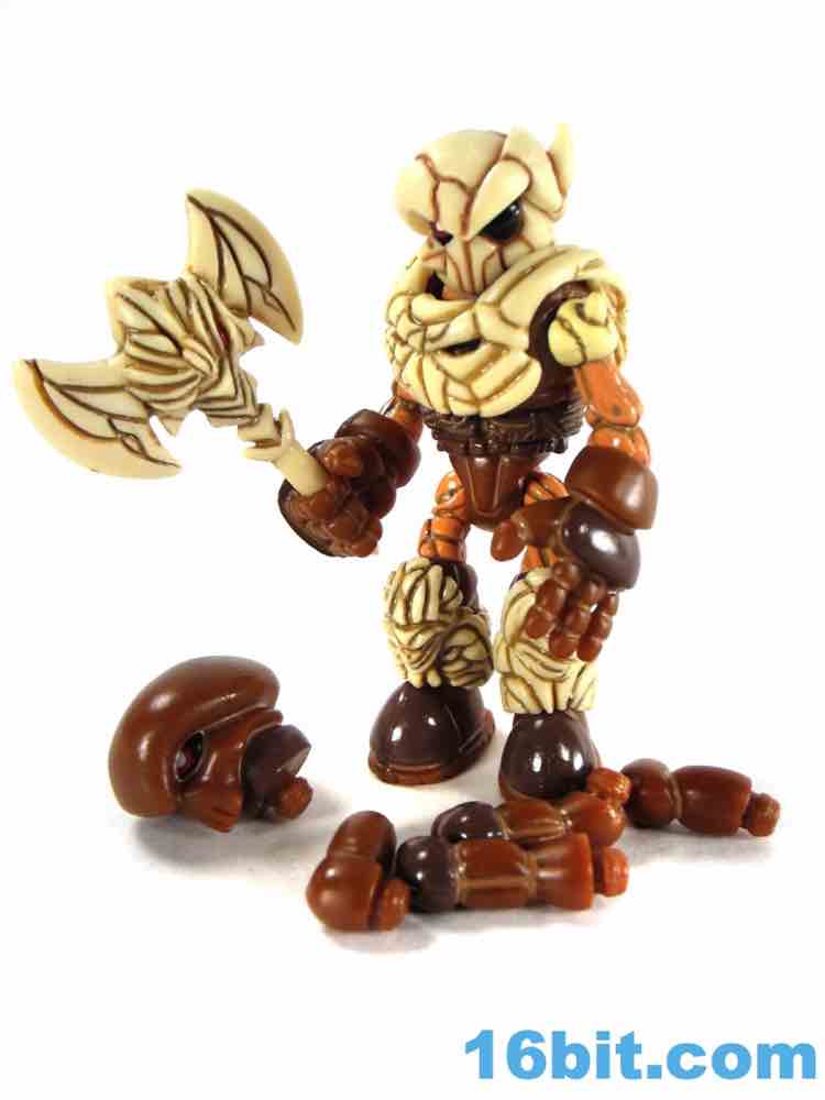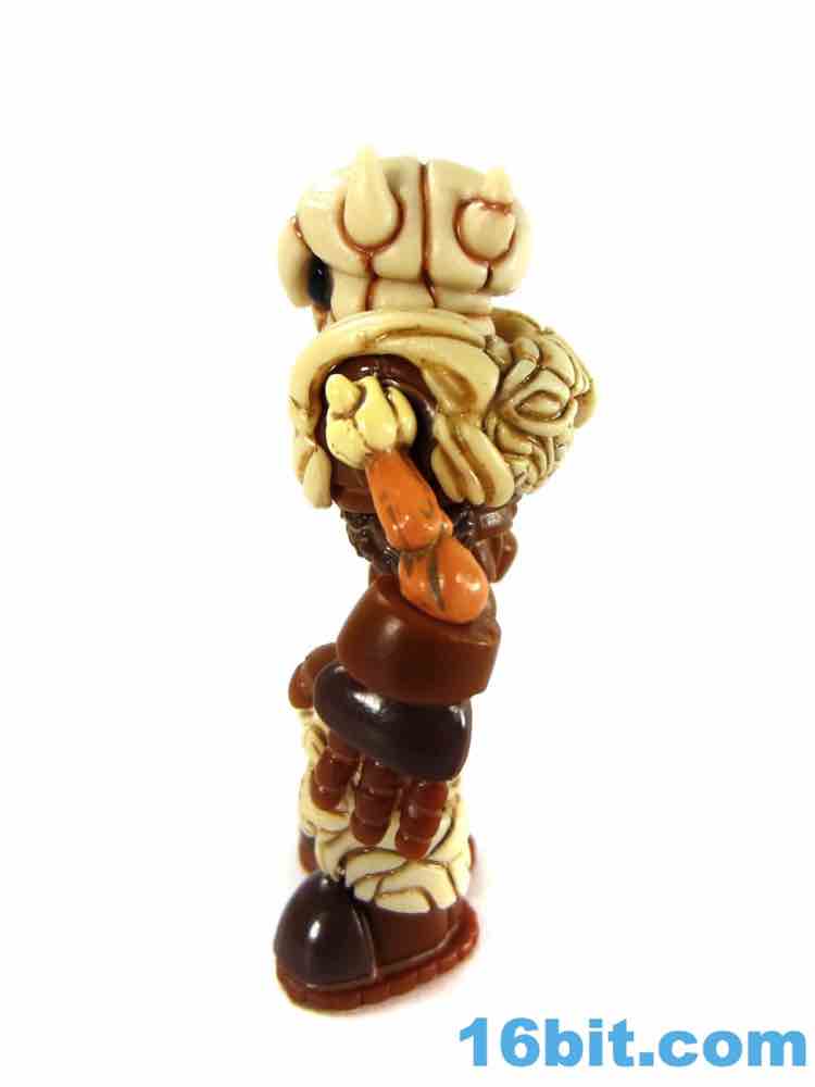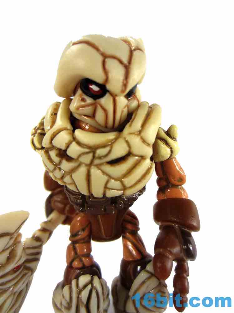 Being shown just how good a figure you've got may not be worth extra money, but in this case I'll make an exception. Standard Skeleden was a great figure - made of two colors of plastic, this panel line-free figure had a nifty bony color which, without paint, showed the various cracks and ridges quite nicely. The Ullcroth, though, is like a page of comic art given life. The arms are molded in bone color, but for some reason painted with a pink part for the biceps and elbow, bone paint on the shoulder, and panel lines over everything else. That seems excessive, but that's why it's $18. You also get brown patches on the hands and feet, in addition to the brown panel lines. The head is a departure in that it's all bone, with panel lines, rather than being half "fleshy color" like the earlier versions. It feels like a different figure, from a different era, all thanks to a little more paint and a lot more work applying said paint.