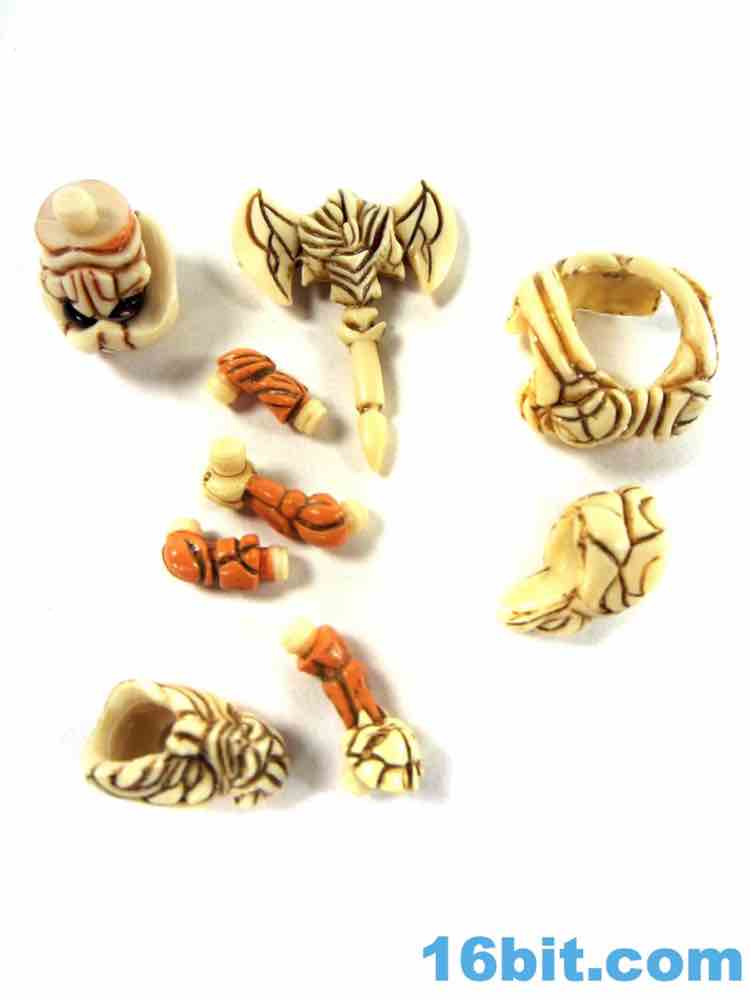 I'm sure there was a reason they added bone joints to the "Skeleden" arms, but I don't know what it is. The bone plastic underneath looked good, and the bone color does stand out as being different from the plastic - a frequent problem on mass-produced mainstream toys. Getting white to match white is not easy.