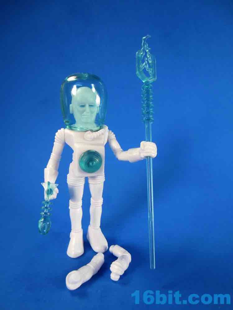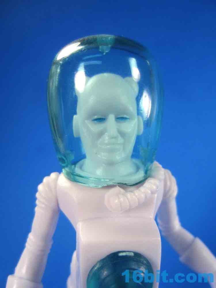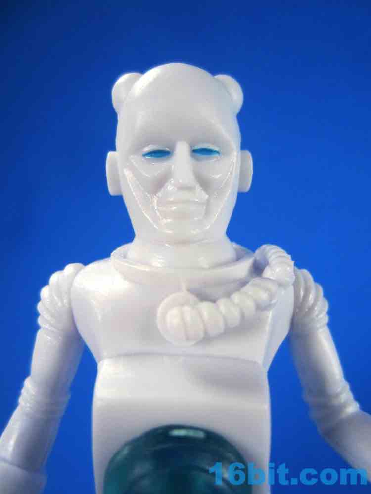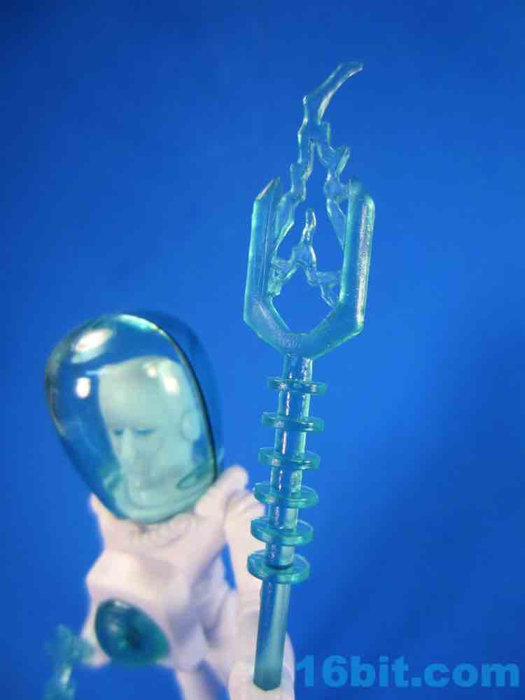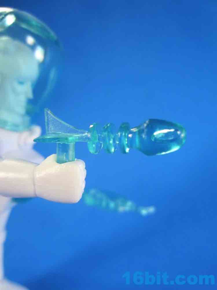 In white, you can see the facial sculpting and fine detail the Four Horsemen created without being distracted by the tricks of the light that paint or clear plastic can give you. Of course, you could also get the gist by seeing the figure on Mel Birnkrant's web page, which is arguably the greatest creator commentary on toys you can ever hope to see. This gives you an unpainted sculpt of your own to admire or change, but let's be honest - there's not a lot to admire with plain white plastic. His clear blue accessories are nice, but not anything to get excited about when his companions have metallic accessories that really shine.