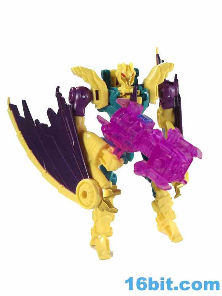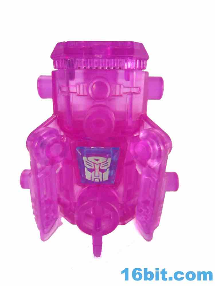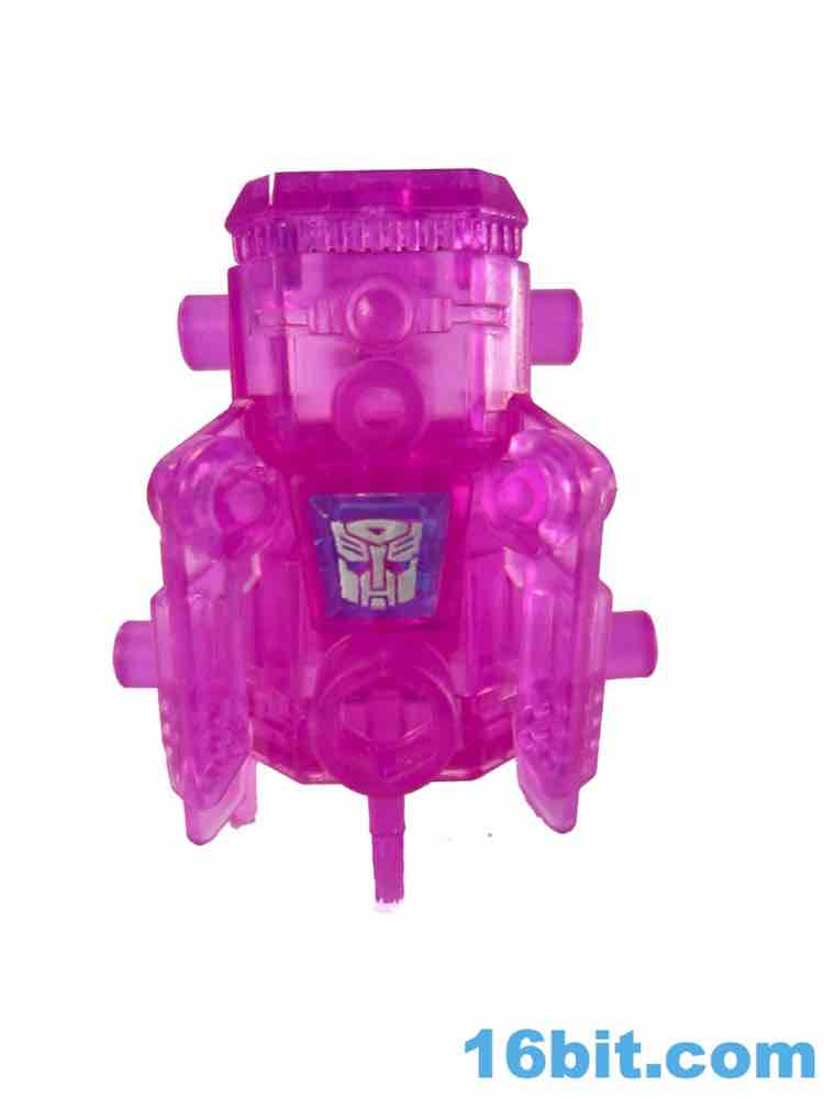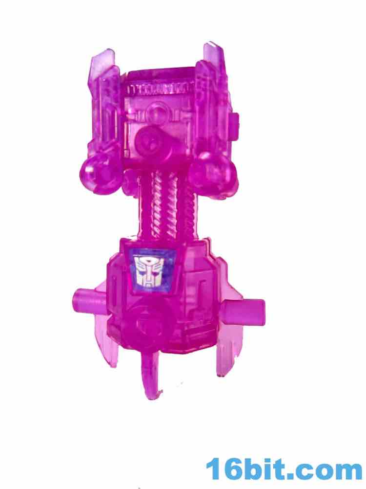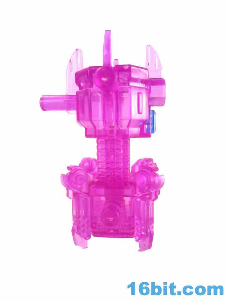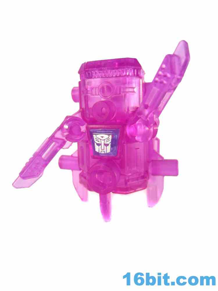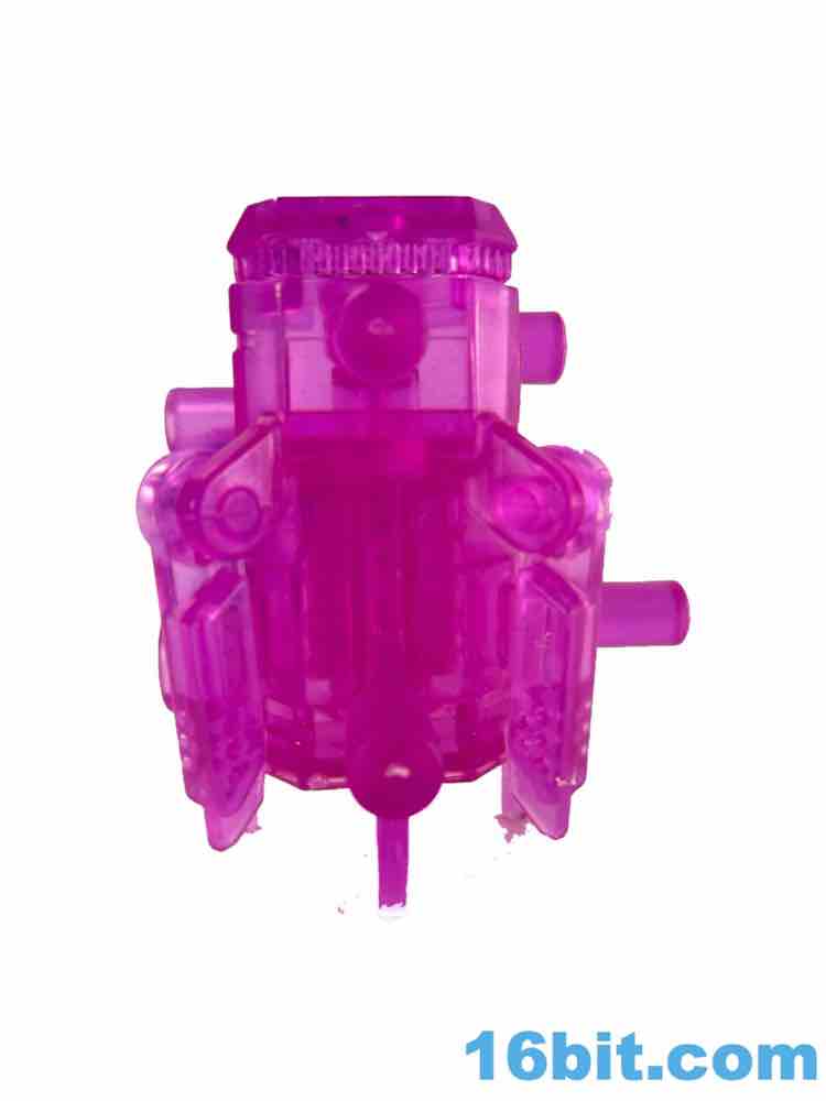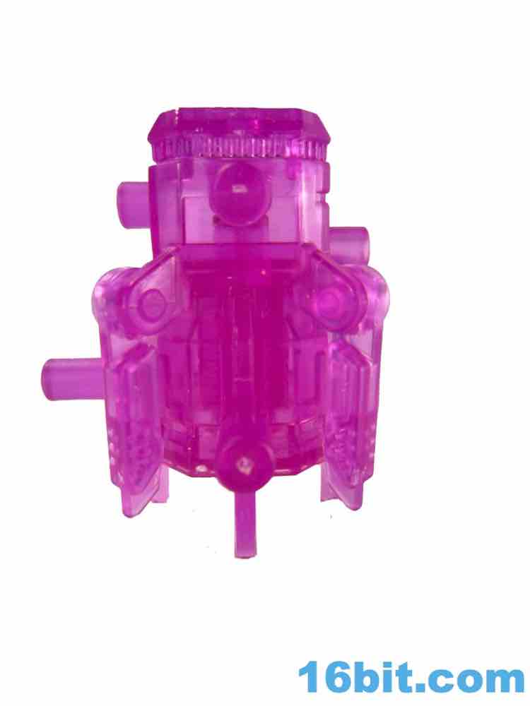 As a redeco from the Arms Micron Dago (packed with Rumble and Frenzy) you can tell there's a little bit of a pylon influence in his design - and that it'd be helpful to have two as some sort of arm extenders. As a little octopus, he's gleefully weird and reminds me of numerous other 1980s Japanese imports, like the Game & Watch version and other illustrations on menus. The purple plastic makes the light behave a little differently, giving him more of a cyclops look rather than as something with two eyes and a sensor in between. Each arm on the bottom rung is articulated and does feel a tiny bit fragile - so be careful when you play around with this one. All you have to do to transform it is move the arms and pull on the neck, and you're done.