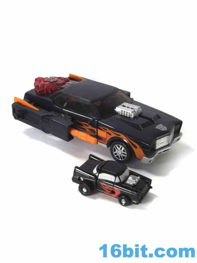 For quite some time fans requested a new version of this guy, a classic Micromasters hot rod that apparently didn't warrant updating until someone snuck it in as a movie exclusive. Big Daddy proved to be quite popular - a repaint of a great Downshift mold from Transformers Cybertron, this black repaint added things kids love - flames, and a head painted to look like Orko. Everybody wins here.
