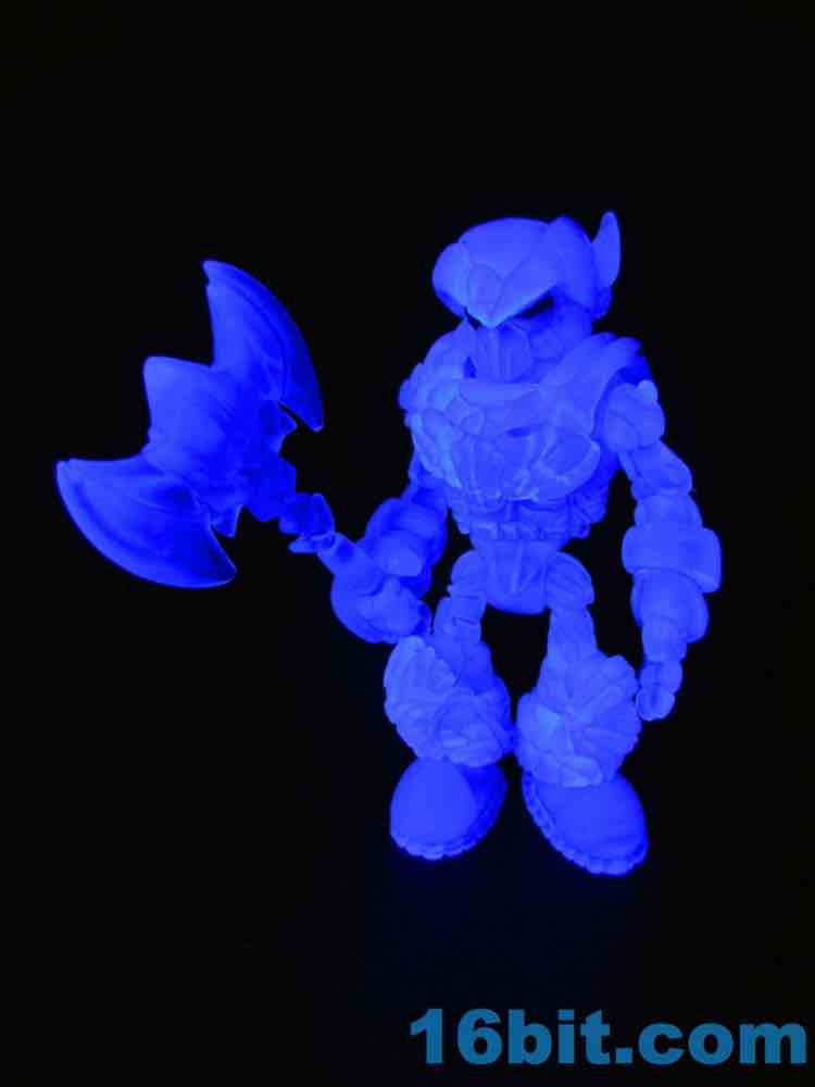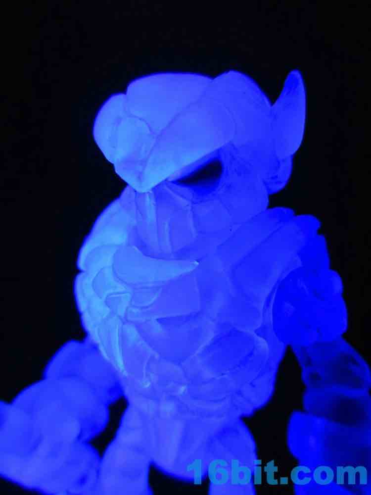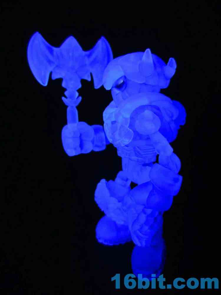 Thanks to the low runs of these figures combined with little marketing, you don't see them come up for sale much once they sell out. Many Glyos figures lately seem to be relatively cheap on the secondary market, thanks in part to the line's robust size and the new versions coming out nearly every month. If you want a Skeleden, and you do, just keep an eye on the Onell Design blog to get one. If you want this one, you can probably get it between its issue price and under $20 without too much fuss. There's not a lot of deco here, but the clear blue is pretty gorgeous in person and that may be reason enough to track it down.