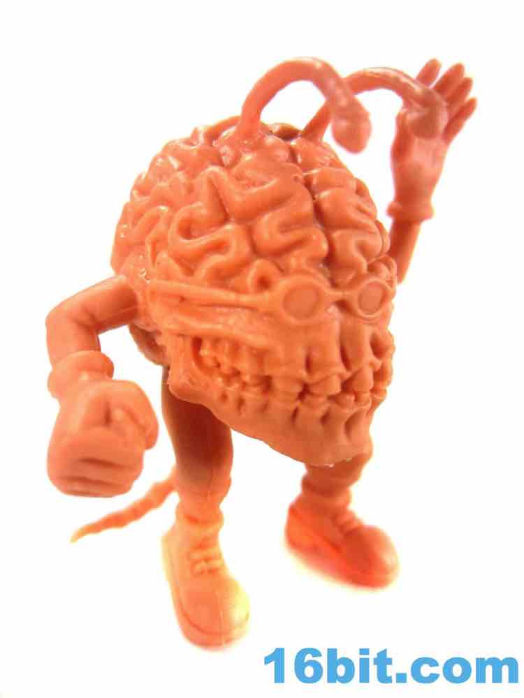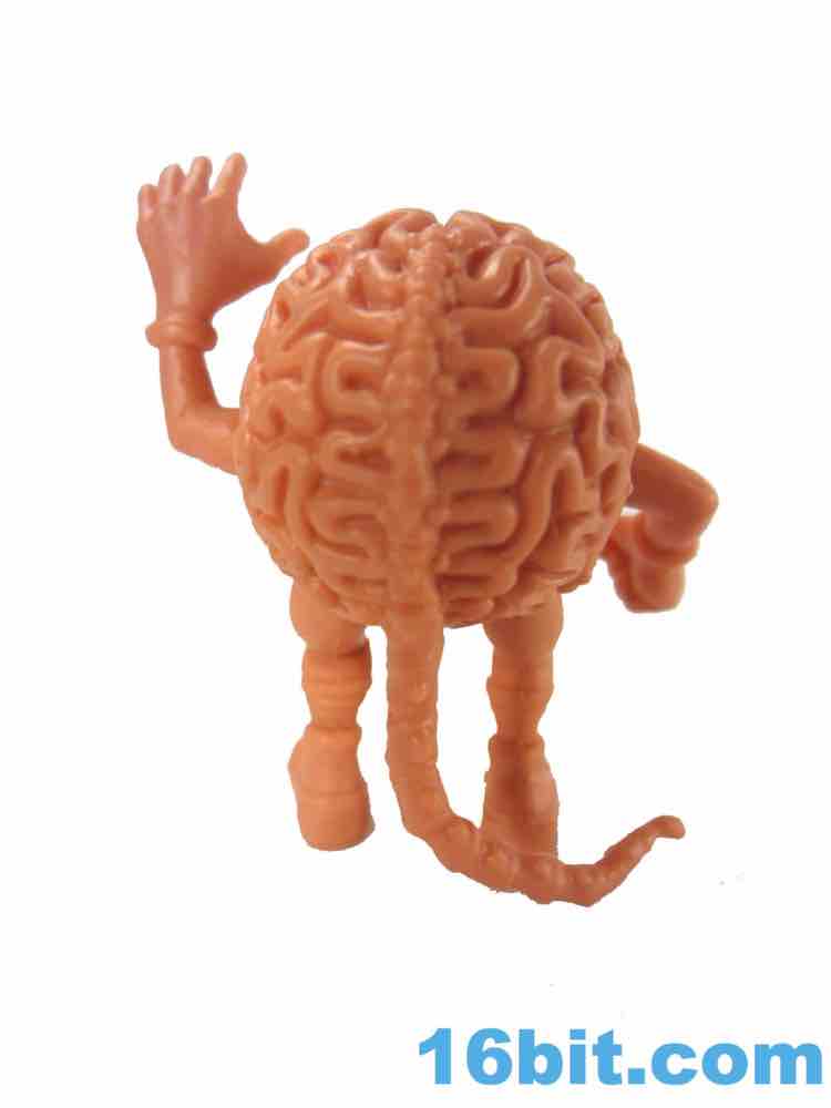 The roughly 1 3/4-inch figure has a nicely detailed brain with tons of grooves, with a surprisingly well-sculpted toothy mouth and what seems to be part of a skull. The arms and legs are fairly simple tubes, but the hands are gloved and the feet have shoes with soles and laces. Heck, they even gave him tiny glasses with arms that wrap around his ear - or it would, were there any ears present.