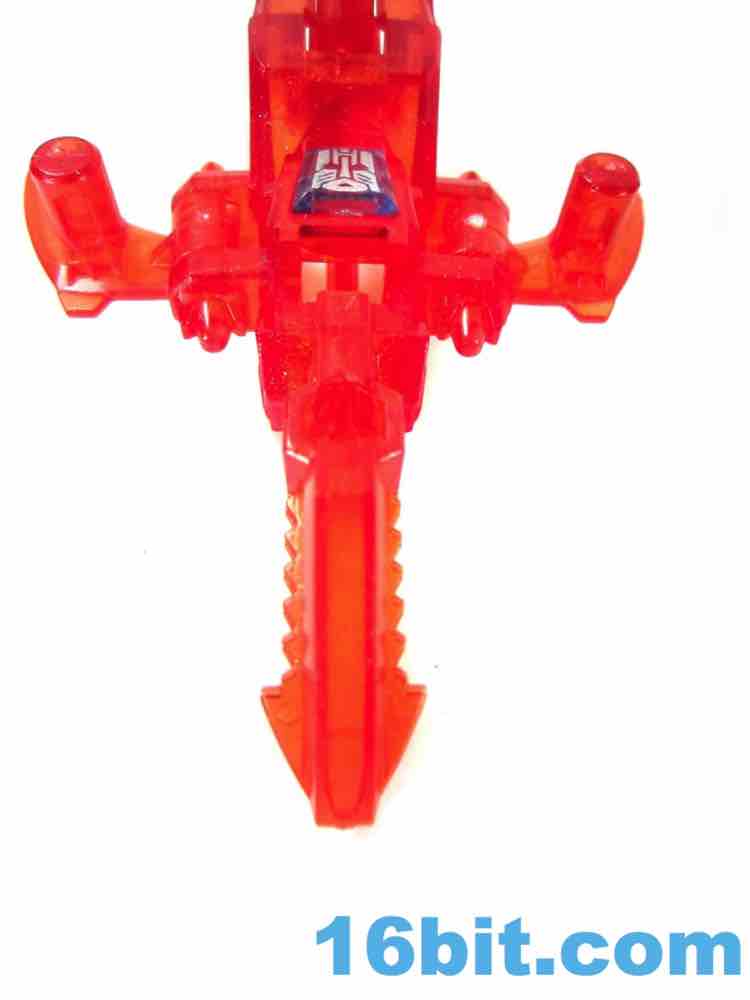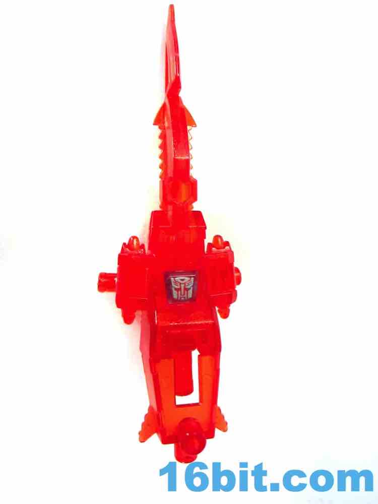 I dig toy sharks, especially in Transformers. Usually you get two good modes and some pretty creative play features, and the saw shark Ex as a robot sea creature that turns into a sword seems solid. It's not, but it seems that it is. It's a clear red recolor of Giza, the pack-in from Arms Micron Nemesis Prime. The weapon mode doesn't look like much of a weapon, and the shark mode doesn't look like much of a shark.