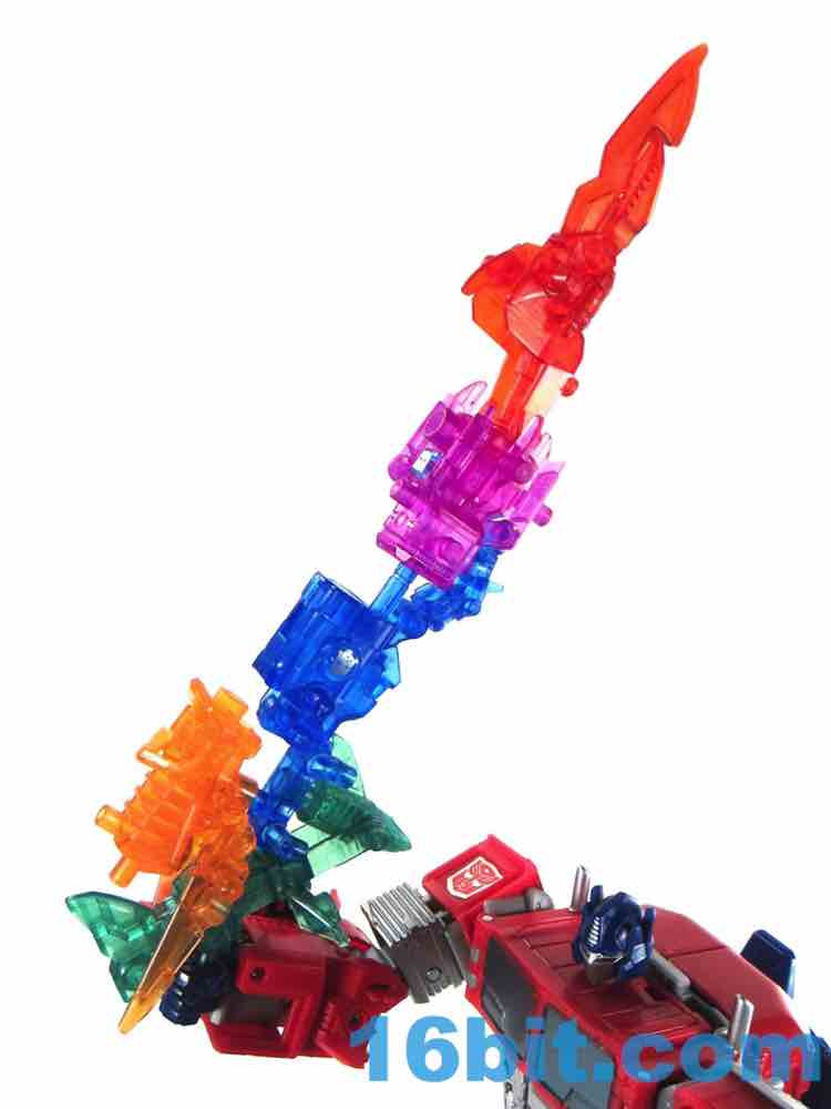 I also realized it wouldn't fit on many figures - these were designed to fit with most Prime and Arms Micron figures, which means figures with smaller, open 5mm hands are good for it. Figures with big bulky closed 5mm fists, though? Forget it. So don't expect to do a lot of mixing-and-matching with all of your favorites, as this will fit with many - but not all - toys over the last couple of decades. Go and Sen are a lot friendlier to other toys. I dig it as a weapon, but it's not a good weapon for every figure you own.