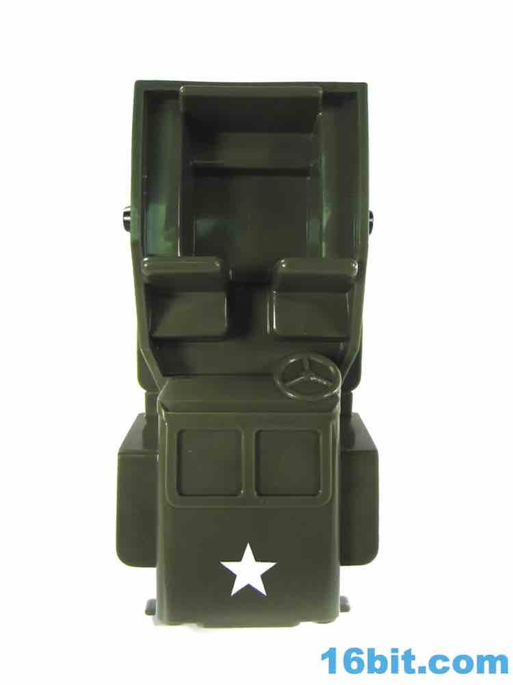 The artillery plugs right into the hitch, locking in nicely and rolling around on the floor without a problem. The little plastic that plugs in to the bumper of the Jeep also acts as a kickstand for the weapon, so you can have it posed by your army men. It's worth noting that the men can't actually drive the Jeep due to design limitations, but they look pretty good standing near it. There's very little sculpted detail on either vehicle, but you do get the famous Jeep grille and some nicely detailed tires.