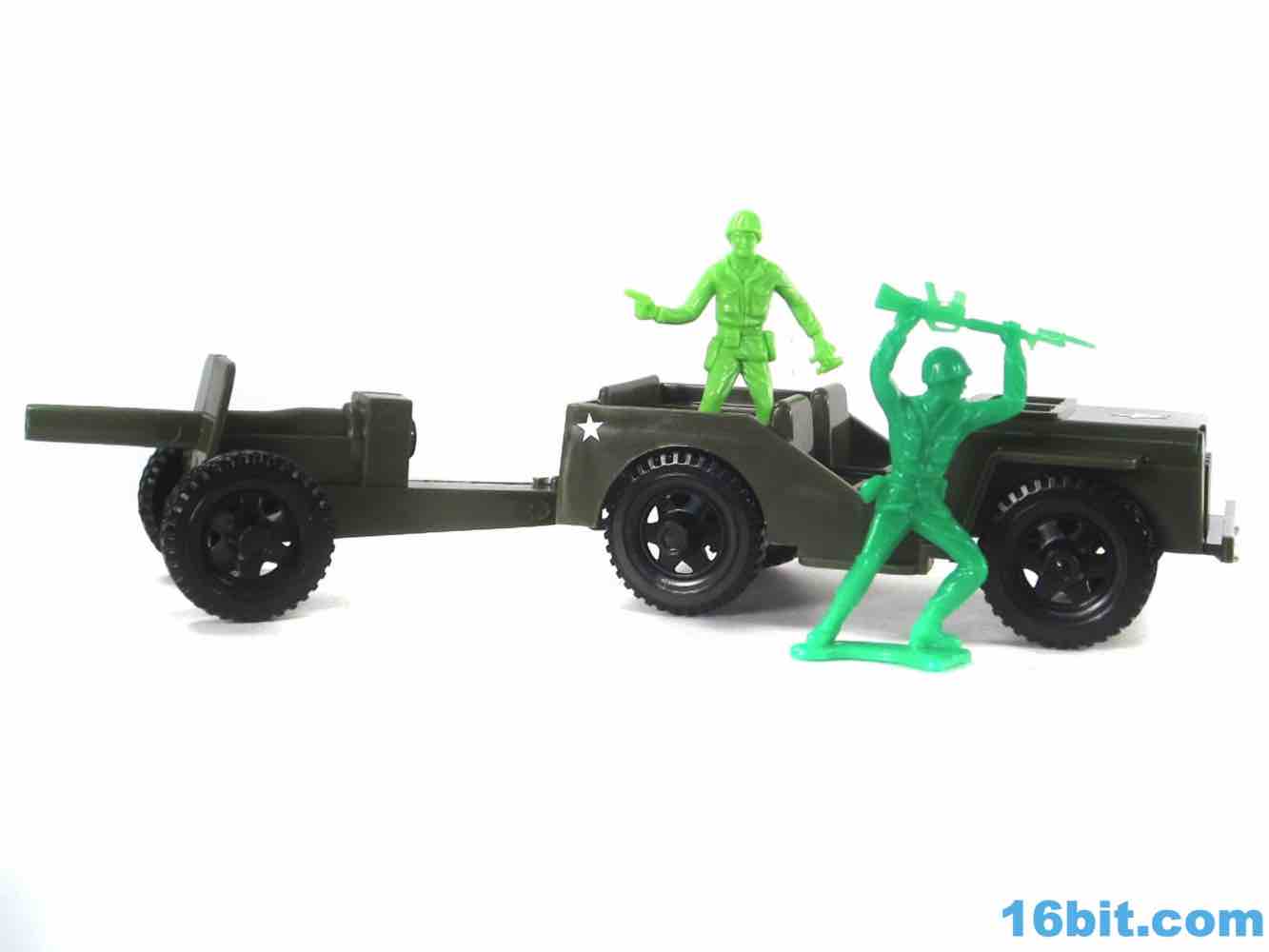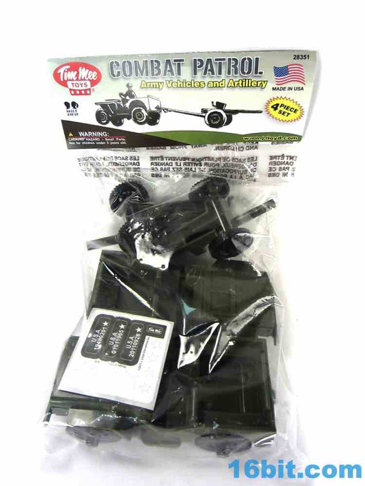 Tim Mee Toys Combat Patrol Army Vehicles and Artillery Vehicle Set If you collect army men, some vehicles are nice to have. The Combat Patrol Army Vehicles and Artillery Vehicle Set costs you a bit over $4 a piece, which means it's not too expensive. It's not cheap either. The tanks had articulated turrets, while the Jeep fleet has rolling wheels. The designs are nice and clever, but with the windshield flipped down and little room for figures they serve as a reminder of how old toys were. Sometimes a rolling jeep was enough to keep kids entertained.