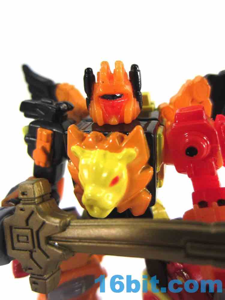 Despite the gimmick of bringing metal back to Transformers toys, there's not much here. The arms, wings, head, and legs are all plastic - and so is most of the torso. I think - it's not a part of the toy you might actually touch. All of this aside, the paint job is actually quite impressive given the size and the fact it's Hasbro. Each little beast head has painted eyes, and many show feet or claws with a little deco too. The wing tips are black, their feet are the same colors as the toys in most cases, it's hard to not be impressed by what is essentially a gorgeous execution of a pretty weak toy concept. Hasbro took the ball and ran with it - and for five bucks, this wasn't a bad little figure. Keep in mind $6 could also have bought you a Scout-class 4-inch transforming robot in those days, but such is life.