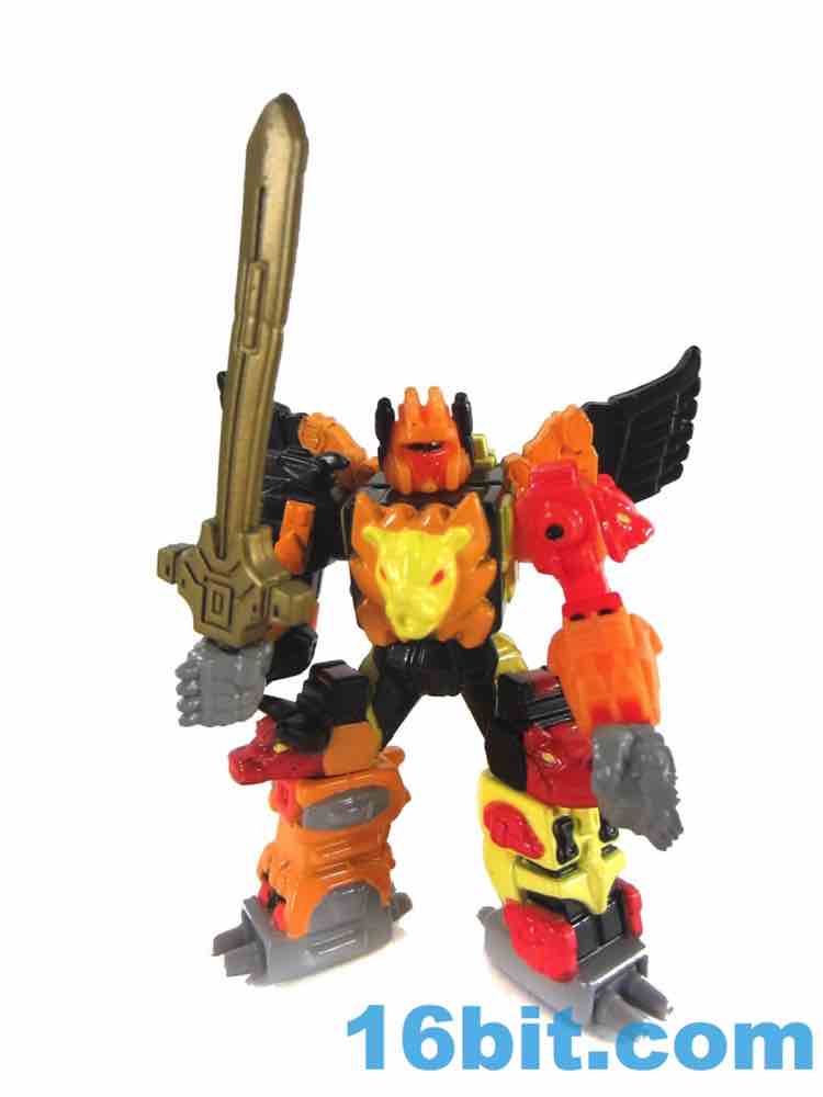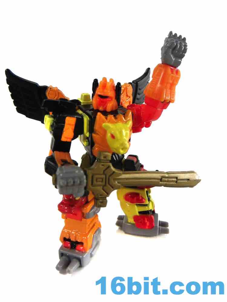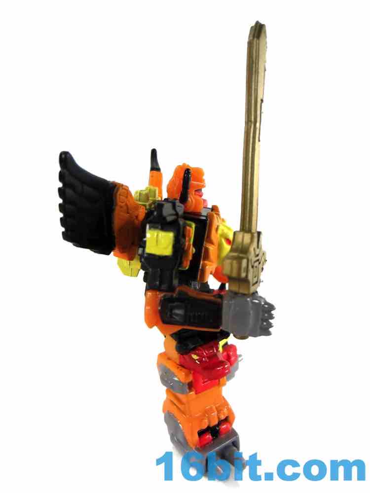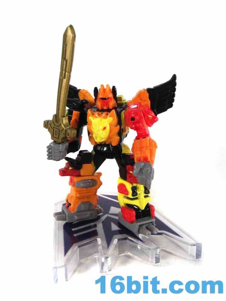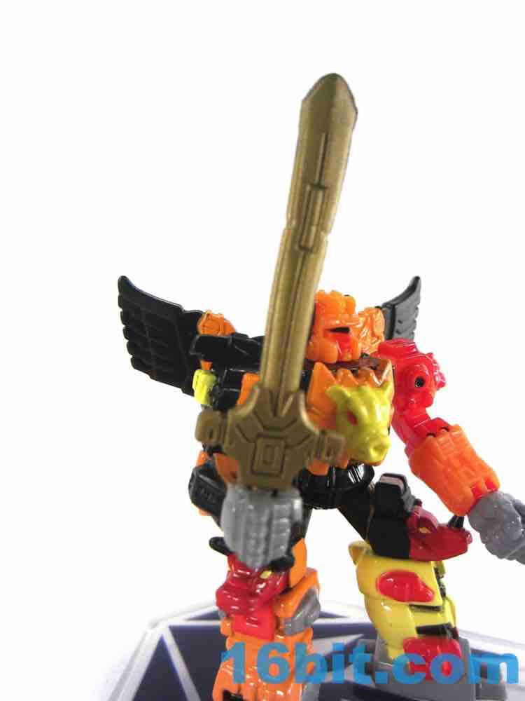 As one of the bigger, more popular, and more famous faces of the later days of the original line, Predaking gets surprisingly few toys. There was the original, this one, and a reissue of the original - sure, other toys share the names, but the combiner team hasn't really been updated much. This non-transforming 2 1/2-inch figure has articulated wrists, shoulders, and a neck too - plus you can plug a sword into his hand. He also has a "display stand" which has no peg for his feet, so it's really just a coaster.