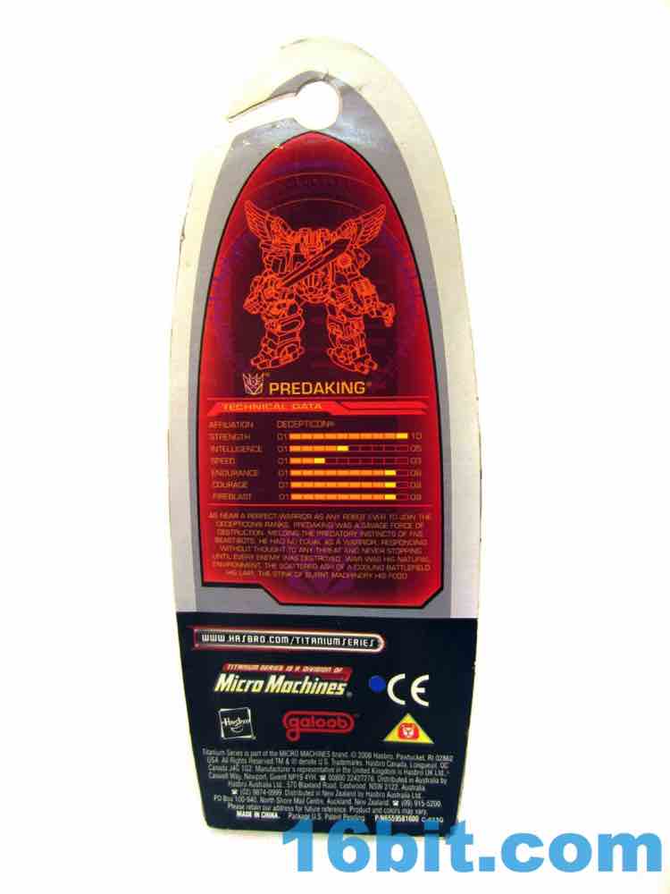 Item No.: Asst. 33901 No. 33922 Manufacturer:Hasbro Includes:Sword, display coaster Action Feature:n/a Retail:$4.99 Availability: September 2006 Other: Fist new G1 Predaking toy since original, and still the only one not counting reissues