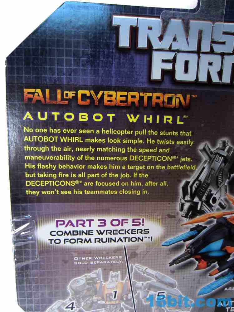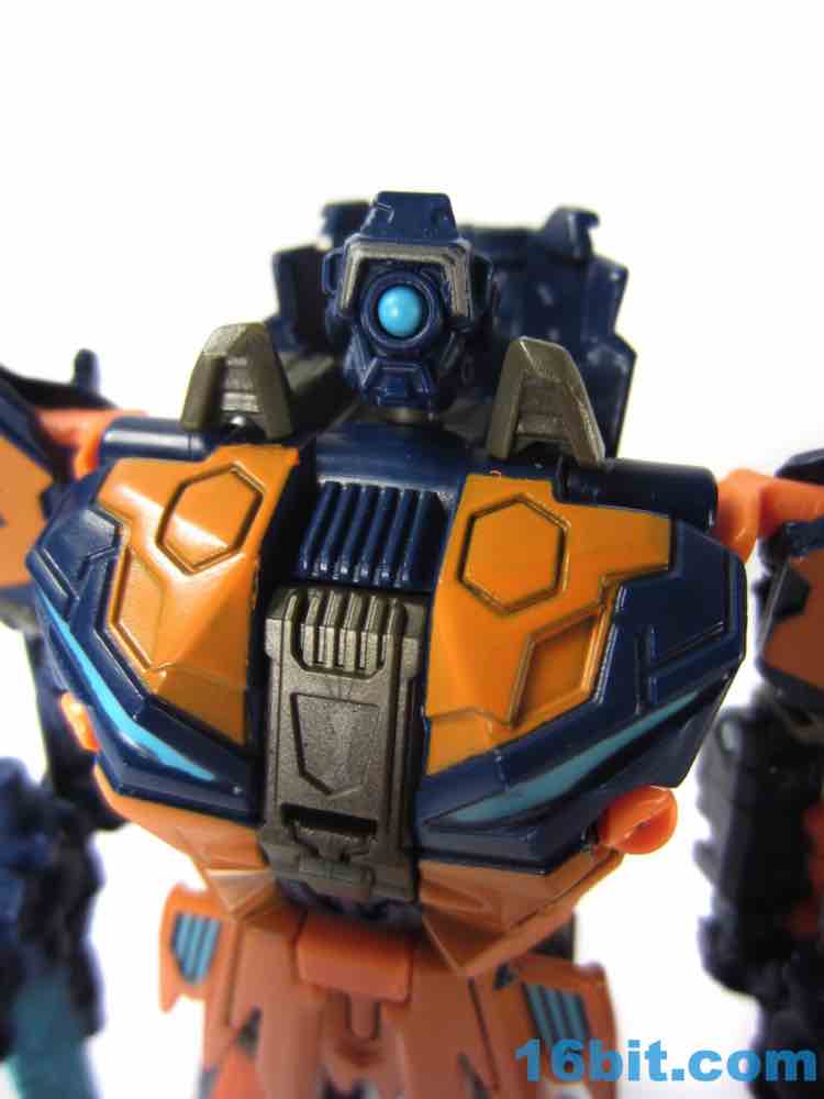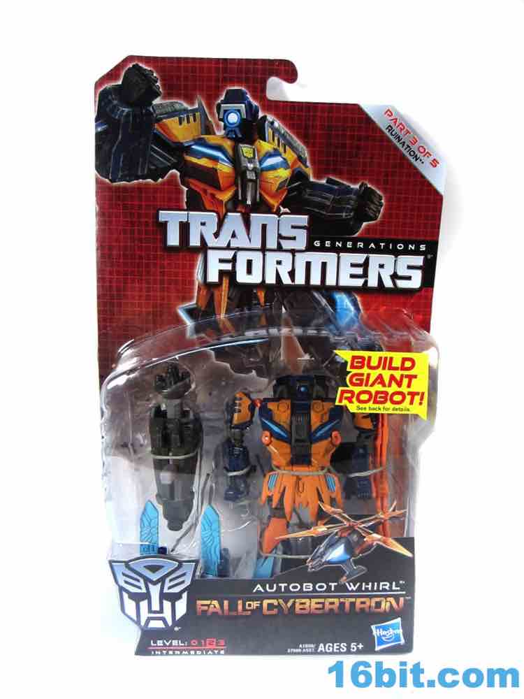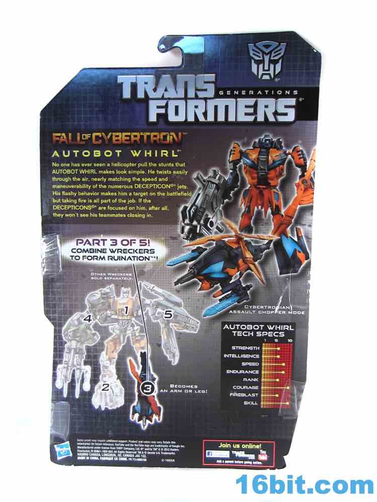 Like the other "limbs" in this series, Whirl can become an arm or a leg to make Ruination - a big Autobot warrior. Since the toys are mostly blue and orange, so is he - so it matches Whirl nicely. In robot mode he has the famous boxy, one-eyed head used by the original toy and pretty much any decent subsequent remake to hold his name. It doesn't really match the comic version we see now at all, but rather a hypothetical different Universe in the War for Cybertron and Fall of Cybertron games.