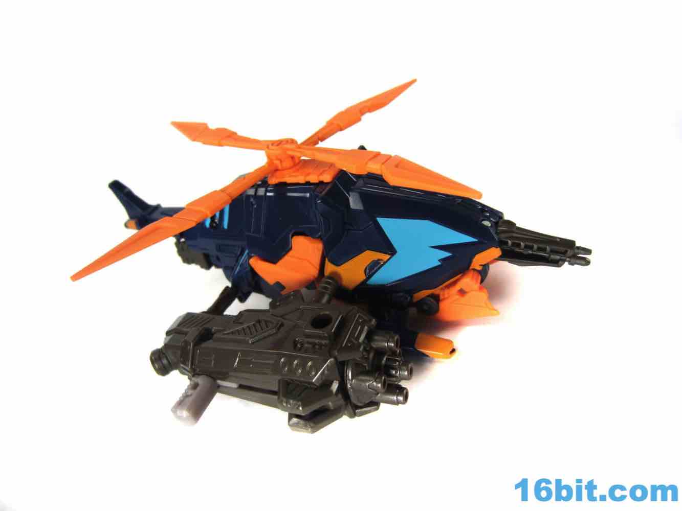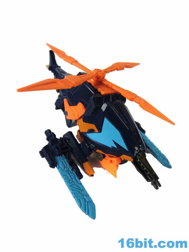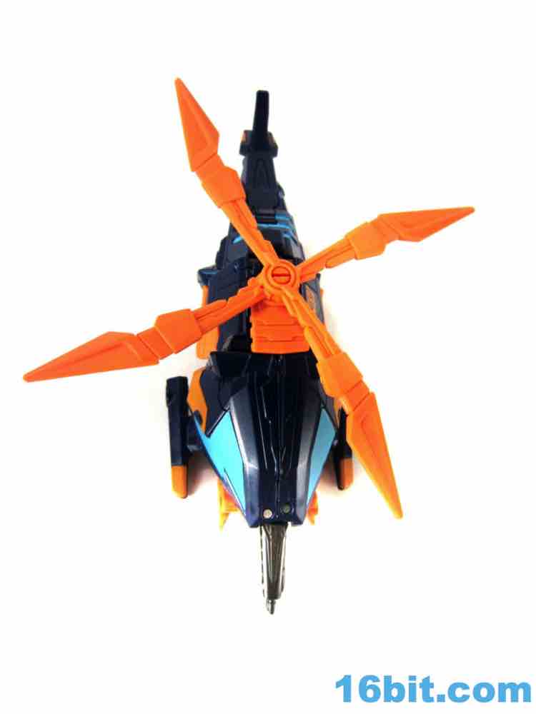 The chopper is great - spinning blade, and that's about it. The swords plug in to the vehicle, as does the unique-to-this-release spinning blaster weapon. The color scheme is largely similar, with lots of blue and orange to remind you of that one high school's awful colors. You know the one.