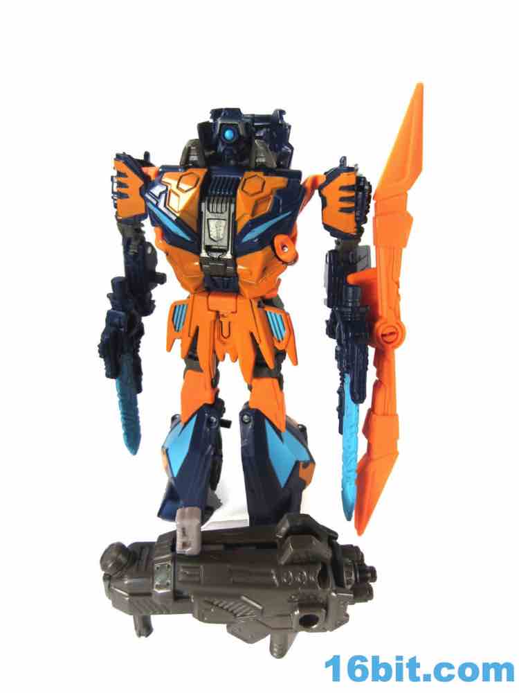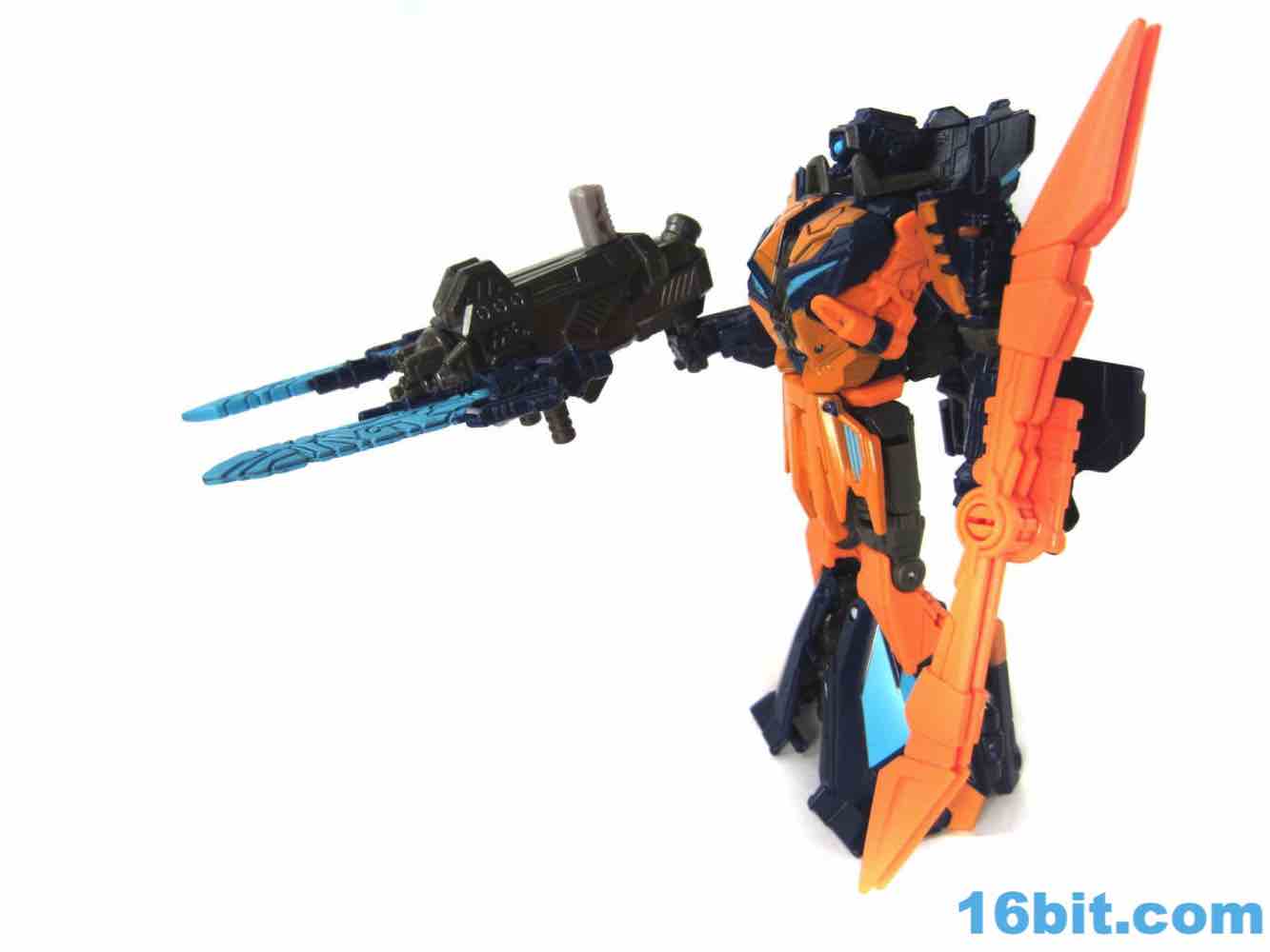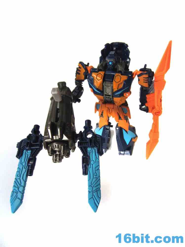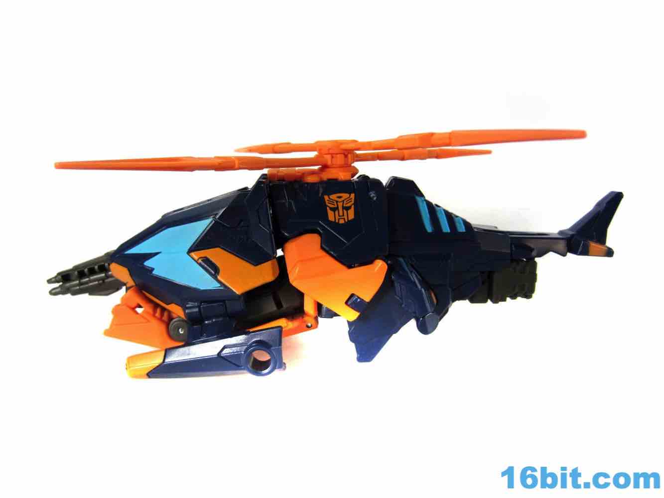 The chopper is great - spinning blade, and that's about it. The swords plug in to the vehicle, as does the unique-to-this-release spinning blaster weapon. The color scheme is largely similar, with lots of blue and orange to remind you of that one high school's awful colors. You know the one.