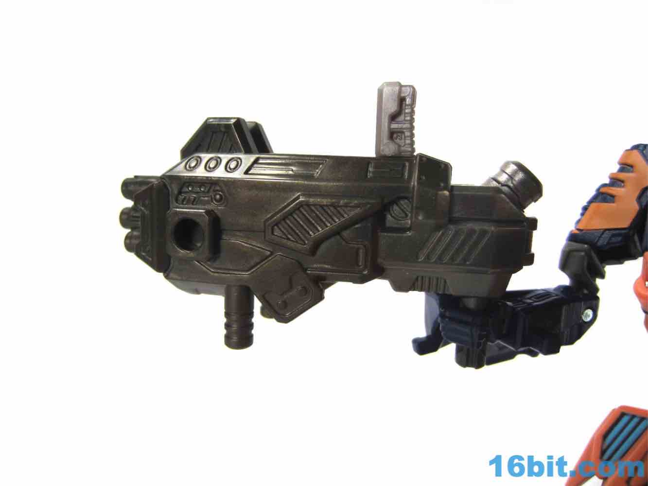 One of the more fascinating parts of this particular release - and his entire team - are exclusive, geared weapons. Whirl has a gun that spins when you push on the lever. It has 3 5mm pegs so it can stand freely, be mounted or held, or fall over. It also has a pair of 5mm holes so you can plug in his swords if you like. It's simple and fun, easy to use and distinctive. Classics-type toys rarely have fun, action-packed weapons so something like this is a real rarity. It's a shame that other than MechTech weapons and these we rarely see this kind of thing, but it's a fun treat when they happen. Treasure them.
