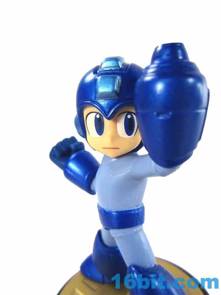 The 3-inch figure (including the base) is a fantastic statue in line with the promo art for Super Smash Bros. Wii U. The dark blue is metallic, as are the light blue highlights on his helmet. The Mega Buster has a red dot inside it, while his right hand and body glove are matte blue. There's an energy meter on the back of the Buster too, with little yellow bars on it. In short, it's great - but not articulated.