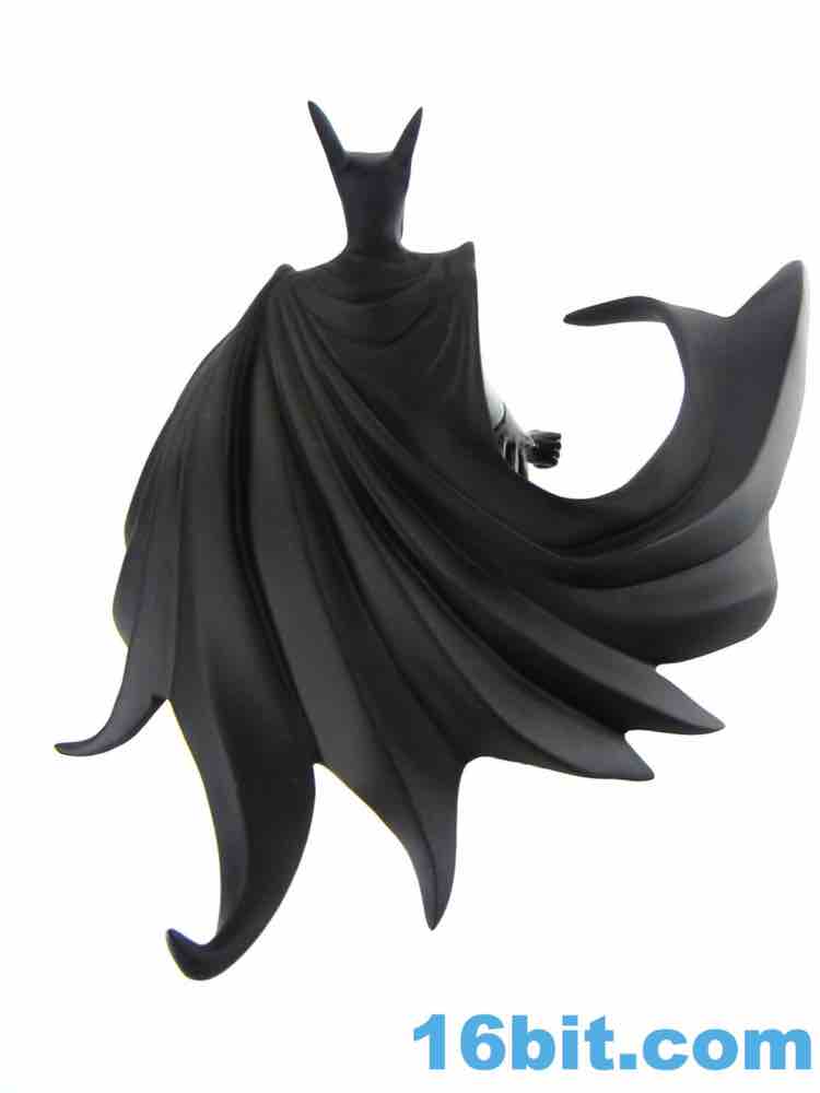 Since it's a statue, this resin collectible has no articulation - it is what you see here. It's pretty neat too, but it's also an item for a more narrow audience. It's a Batman for people who don't necessarily love the ultra-heroics, the Atlas physiques, it's a Batman that has taken a few more punches and spent a little less time at the gym than his similarly named counterparts. The boots and gloves are glossy, plus there are numerous wonderful sharp flourishes between the boots and gloves thanks to sculptor Tony Cipriano. They're thin and pointy, so be careful when displaying this - falling would be bad. The cape alone if a vast undertaking, covered in creases and flowing with a life of its own.