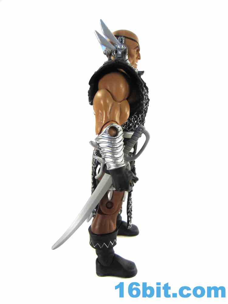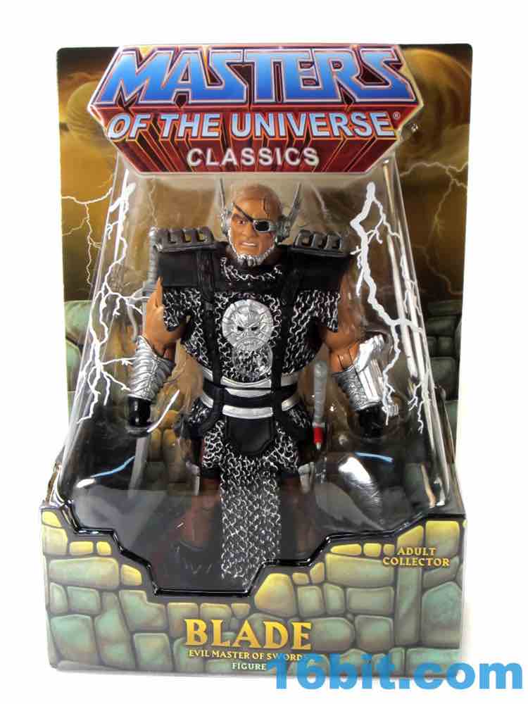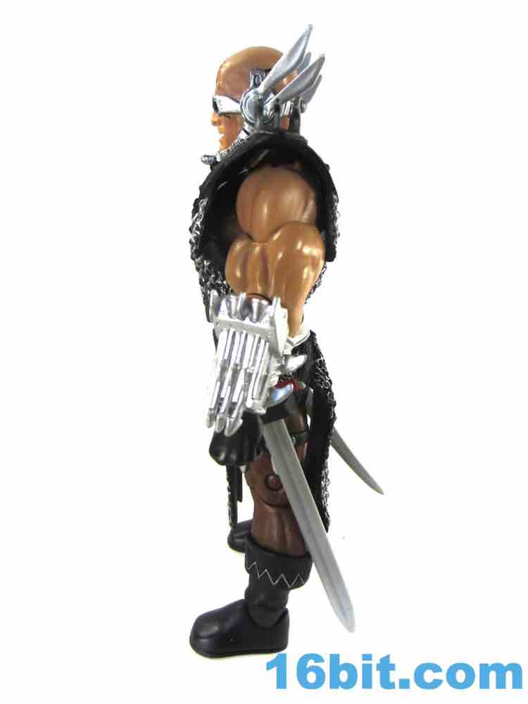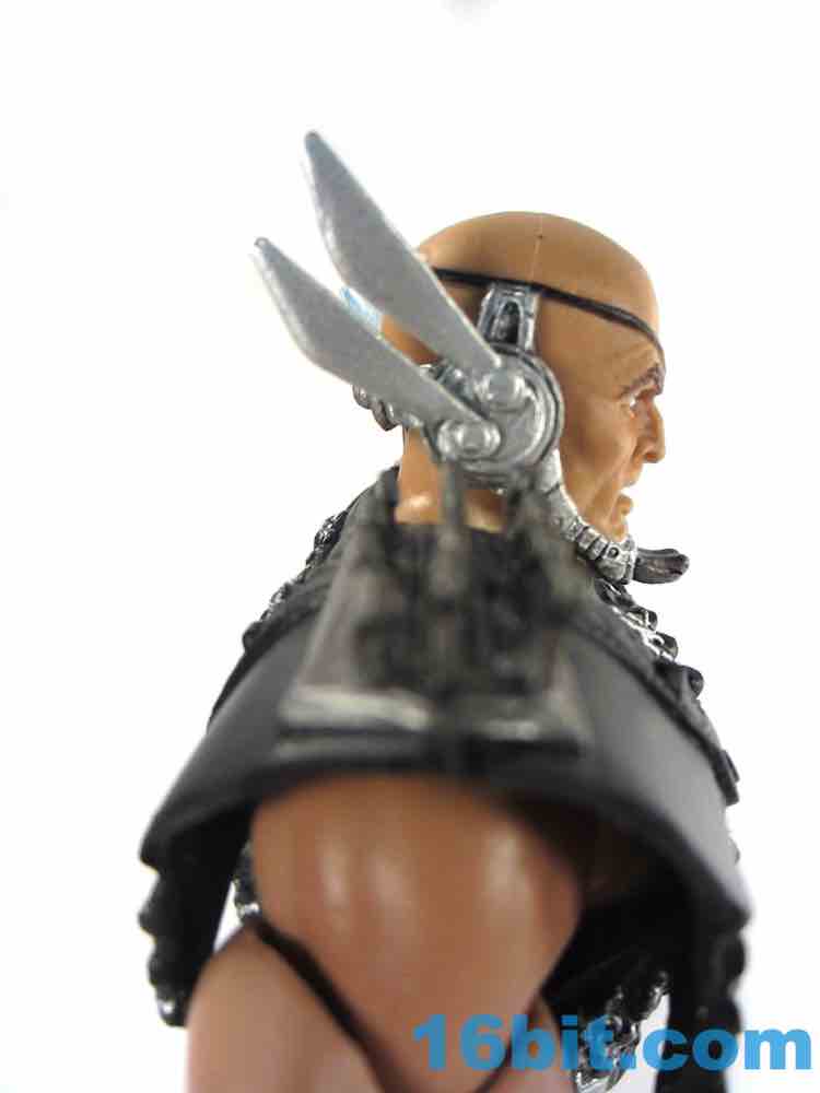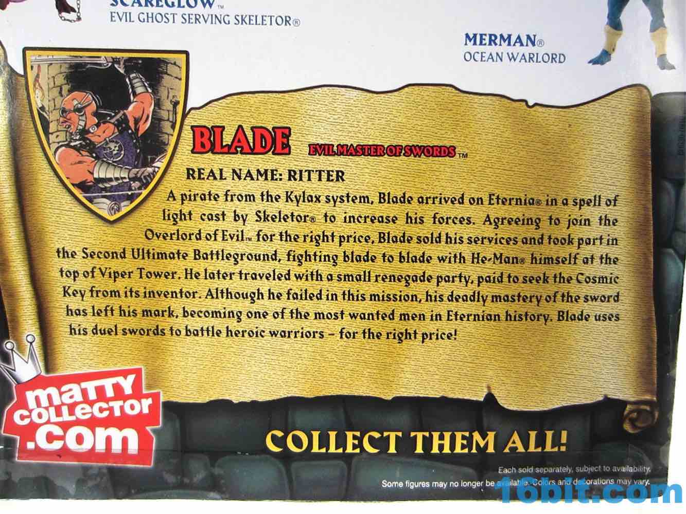 Standing tall and proud, the figure's not-entirely-inhuman face doesn't match with his bulked-out body and armor. It looks like a person wearing a MOTUC suit, complete with chin spikes and ear swords. It's almost better than most 1980s figures - certainly an improvement over the original Blade - in that it takes the thematic concepts introduced by the name and extends them to their logical conclusion. Which is to say, swords everywhere.