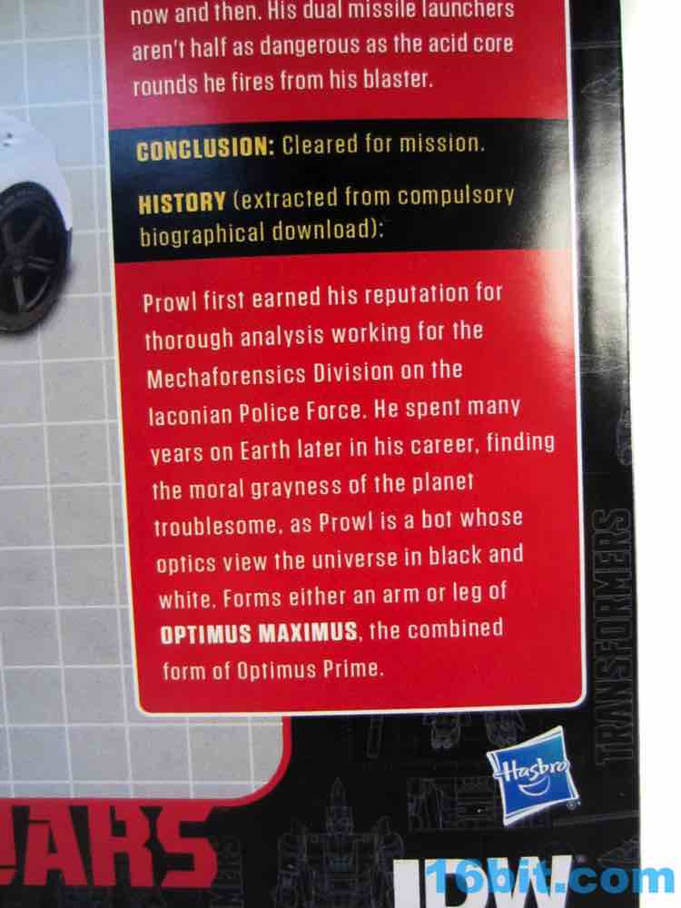 Transformation is the same as the rest - the big twist with Prowl (and Streetwise and Dead End) is how his feet open up so the thighs go inside. Everything else is more or less par for the Combiner Wars course - sturdy, solid, and not as varied as one might have hoped.