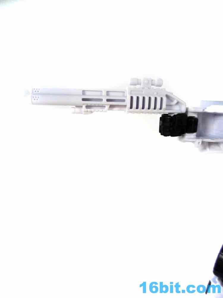 He has no problems holding his shotgun or his hand/foot/gun, because the now-standard 5mm pegholes are sized correctly. I even handed him some other weapons from other toys, and so far everything seems to fit without much of a fight - Microns, BMOGs, whatever.