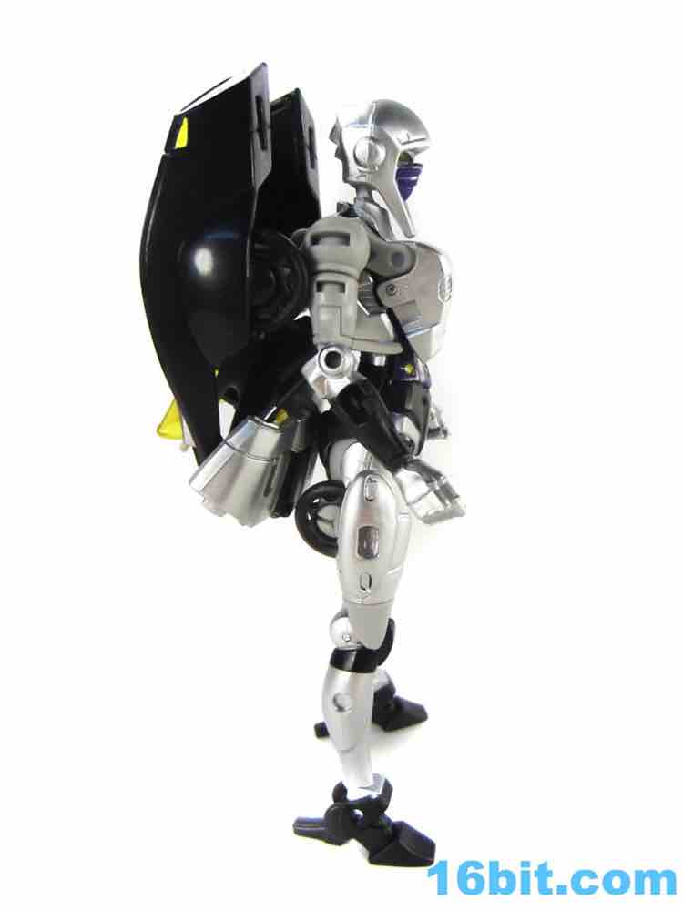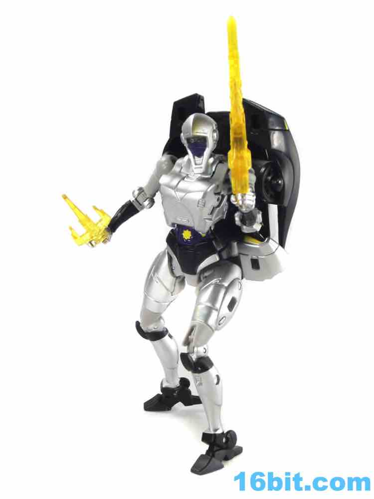 Fans of the original The Transformers show - because that's its actual name - may recall seeing the inspiration for Nightbird Shadow on an episode called "Enter the Nightbird," which gave us the gleefully stupid premise that a scientist developed a robot to help humanity that just went around fighting people with ninja weapons. She was corrupted by Decepticons to steal some fake Autobot science, and her animation model just happens to look a lot like Arcee's recent toy. A remolded head and chest give us a genuinely good Nightbird, complete with features she didn't have on the original show. (She was not originally a transforming character.) Given that we already have a black Arcee repaint, this take on it gives us something neat - a new toy of a character who has never been a toy before. While I've heard some eye-rolling over how dumb the character was, these sort of things make me happy. I mean, I was happy enough to shell out import prices to get her. Even if she does have some unfixed flaws.