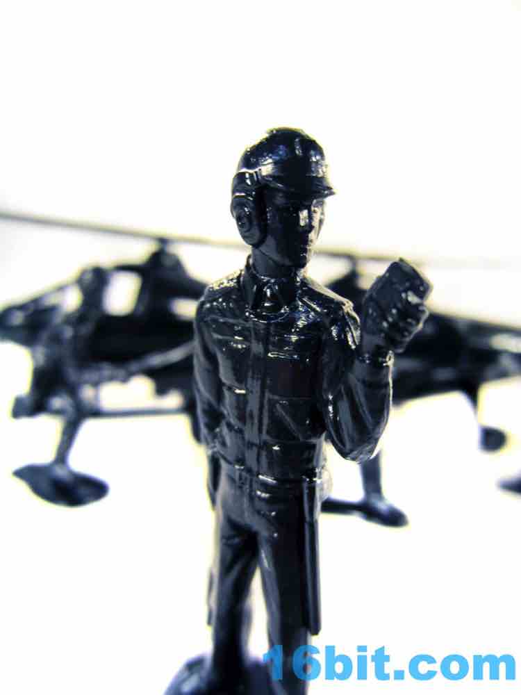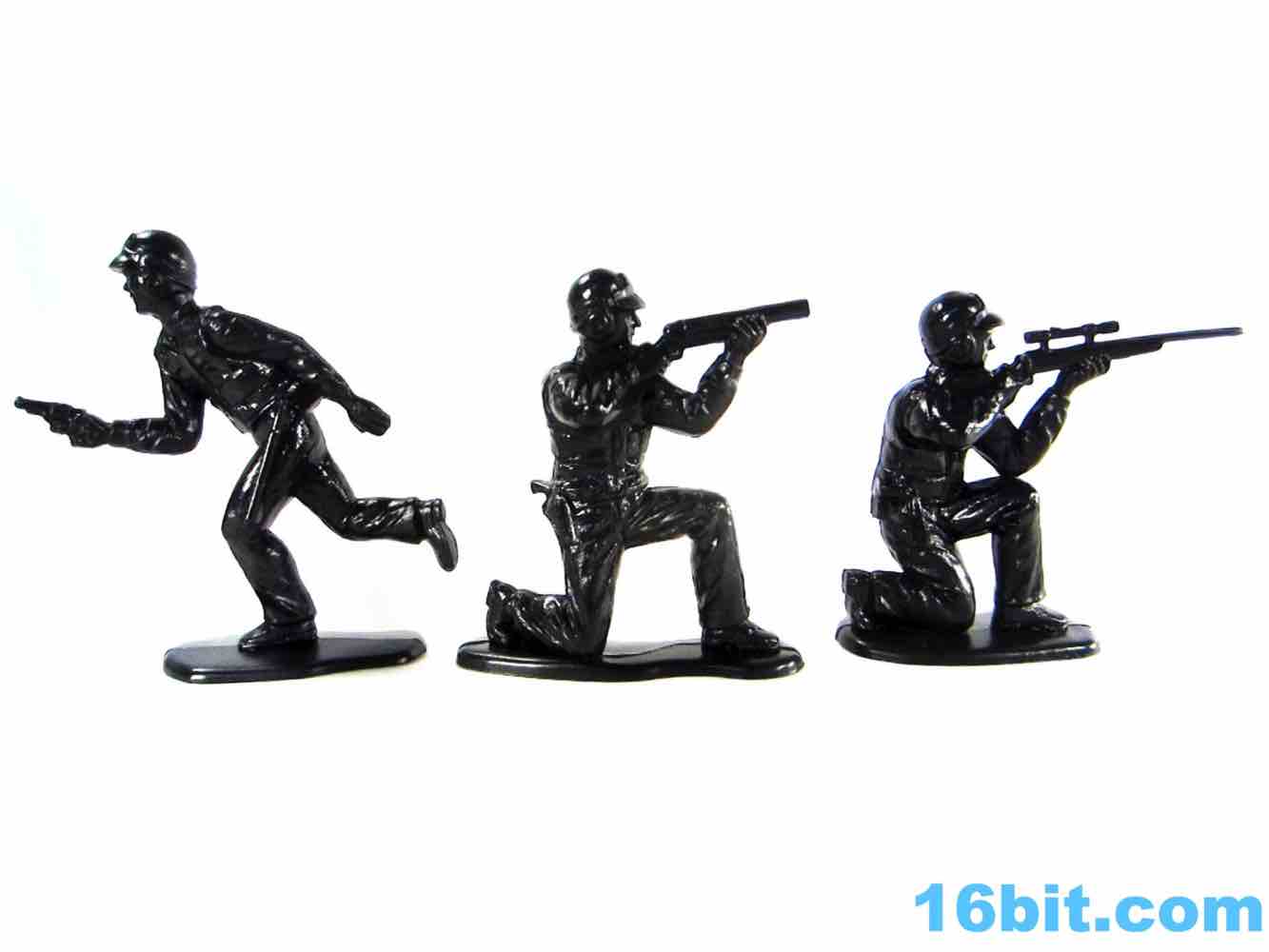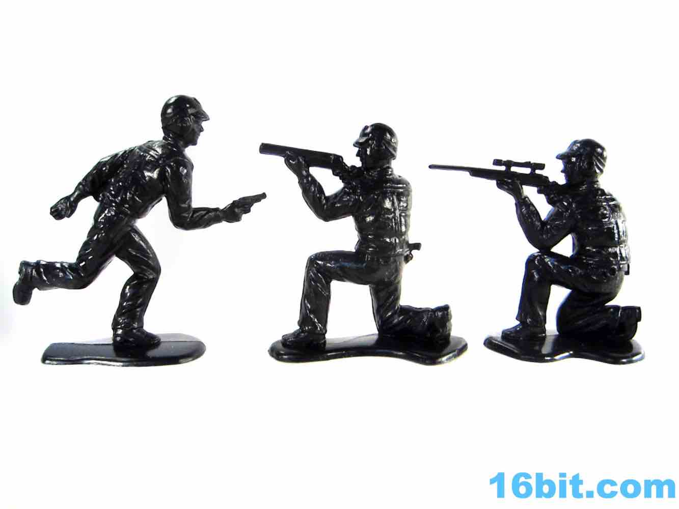 G.I. Joe was invented to kill the non-poseable army man, and now Joe is busy being dead. With increasing prices on all toys, sets like this are a little more expensive than the sack of soldiers at the dollar store - of course, these are gorgeous, crisp examples of the format with top-notch sculpting and no plastic chunks hanging off of them. It's a high-end cheap figure, and they look really awesome for what they.shtmlire to be. It's antithetical to the "bag o' junk for cheap" ethos that tends to carry this format, and unfortunately it negates the instant-army we usually get in Tim Mee toy purchases. One each of six figures feels like we're getting less for our money, even though there's a lot of plastic here courtesy of the sizable helicopters. The HDPE plastic (I think) used here absolutely puts other figures to shame, I've got a decent collection of the Star Wars Command line and while those are nifty, these are glossy, sturdy, and just feel amazing. Those are no slouch - but here it seems like someone put in a few extra pennies to ensure the Shadow Ops sets turned out particularly well. I'd still steer you toward the Atomic Family or Galaxy Laser Team first - or the fantasy-driven Legendary Battle set, that's really impressive and imaginatively weird given its Marvel roots. This is a set that feels totally amazing in your hands, and it's going to look great on a shelf - but Tim Mee's other sets let you give away extras to your buddies to spread the word of this figure format. I guess what really counts is that nothing here is disappointing, but it'd be nice if the bag was more full.