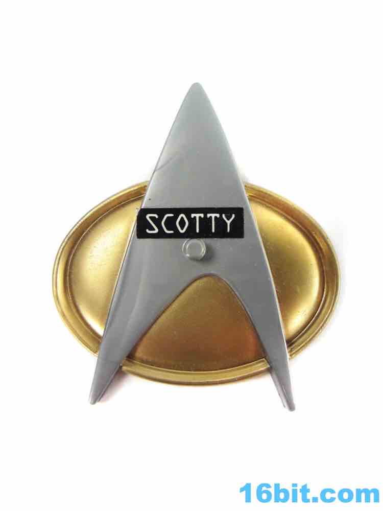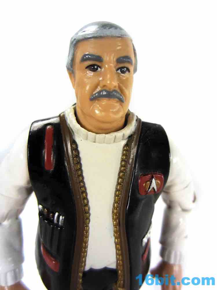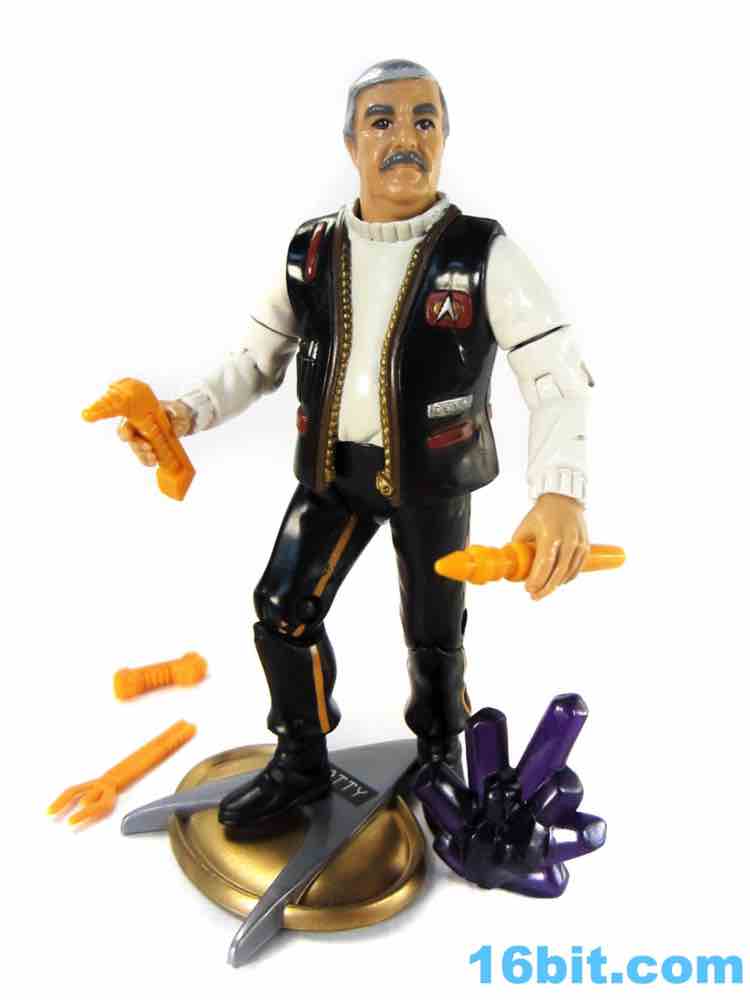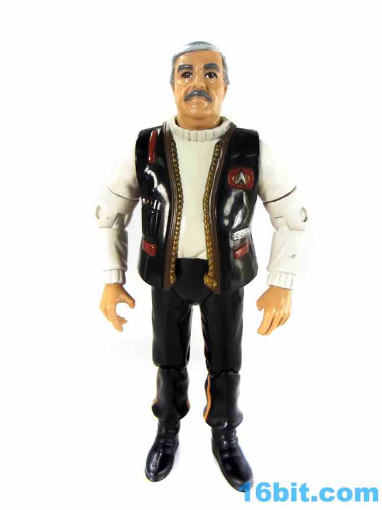 Standing 4 1/2-inches tall, this Scotty from The Next Generation came out in a wave with McCoy, Spock, and others - guess which ones were cherry-picked? His costume is largely based on the engineer vest with the movies, except the insignia pin was replaced by a communicator. It could do double-duty as a movie figure if need be, as it has a lot of the same pins and gizmos. The shirt looks like a movie uniform shirt, and really, what else can you ask for? The likeness on his face is smoothed out a bit, but for the time the deco is really great! The eyes are big and clear, and the hair has some colored highlights - you can really tell that it's graying. His face is a tiny bit lumpy in spots, too, and there's really no denying who this is. He doesn't look as chipper as he often did on camera, but it's still our favorite engineer.