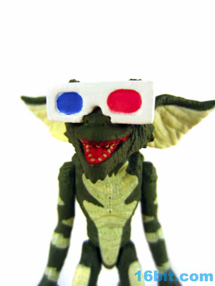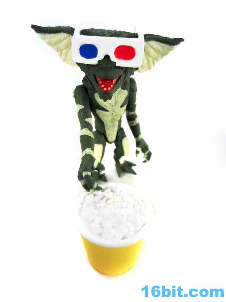 Despite the frozen joints on the Cinema Gremlin , I wanted to make it work - and thankfully, it's doable. Some figures' limbs will not budge, so it's a gamble - this one paid off. The figure shares the same basic body as Stripe and the Bandit Gremlin, but sports a popcorn bucket and one of those most hilarious comedy props in the 1980s, 3-D Glasses. (See also: Swedish Chef in The Muppets Take Manhattan , Billy Zane in Back to the Future .) Add glasses to anything and it's automatically better.