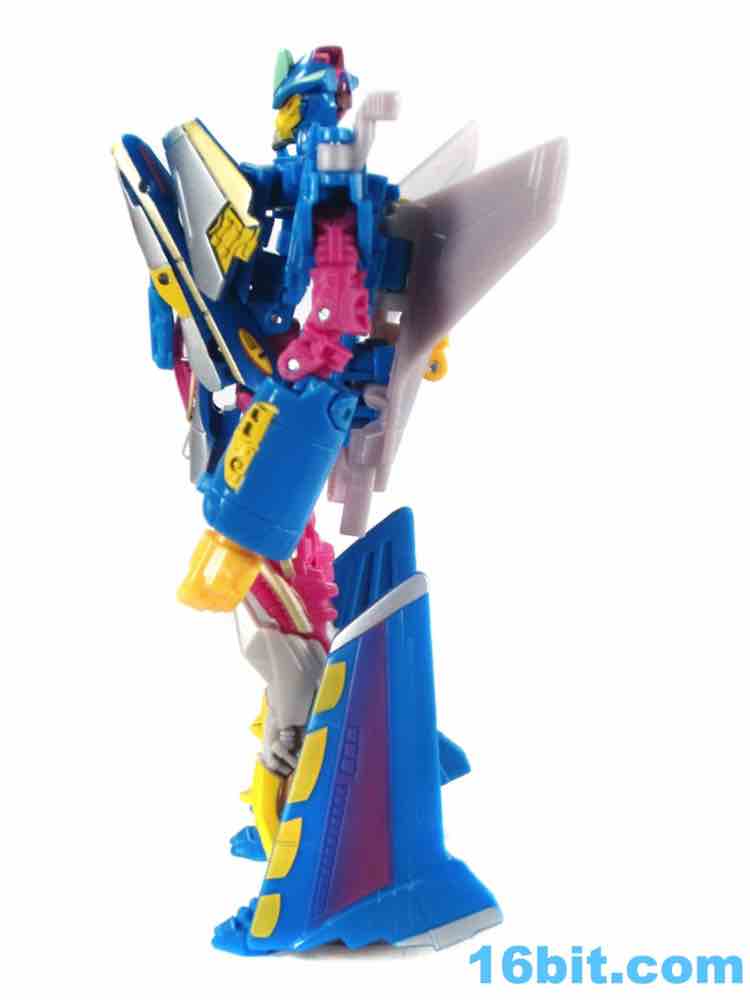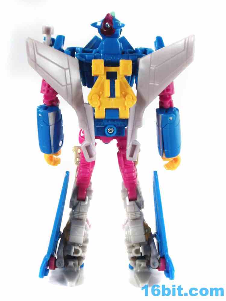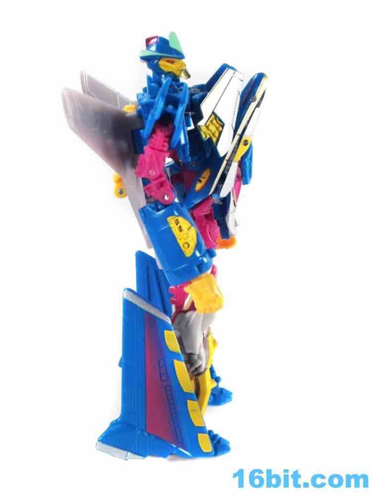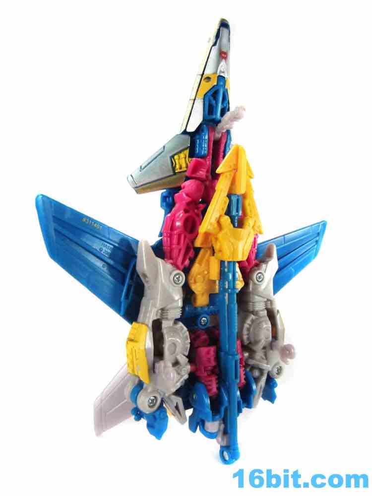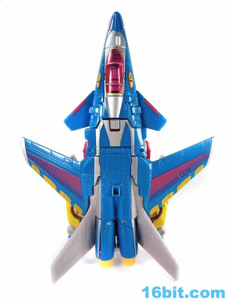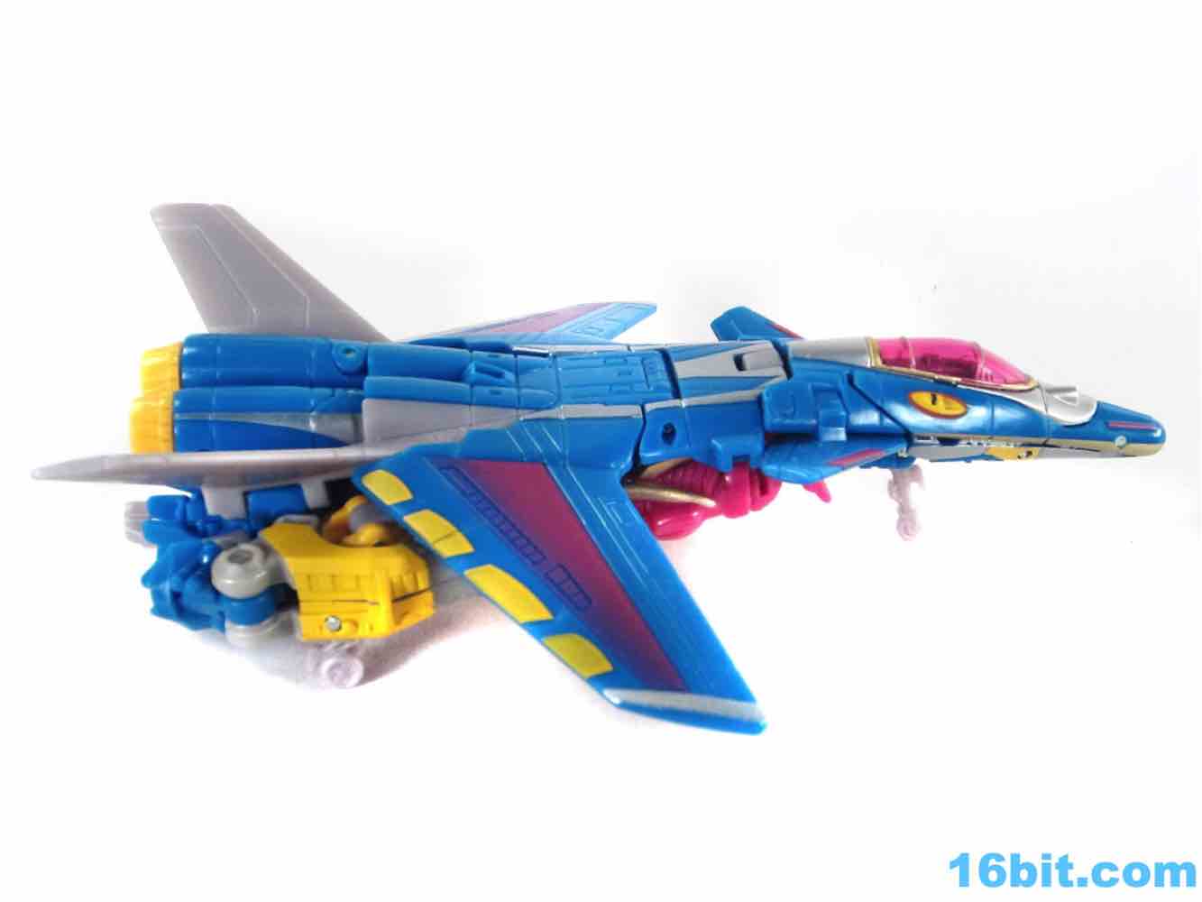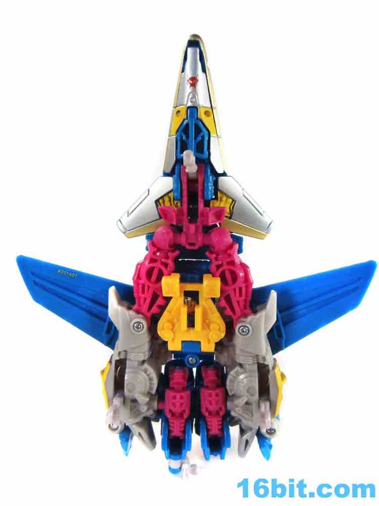 This one is a little complicated - I suggest consulting the instructions. There's a lot of flipping and twisting, plus a less-than-intuitive bit in the jet nose or the robot chest that requires careful extending of parts to ensure minimal snappage. If you like toys with fairly involved transformations, this one delivers that.
