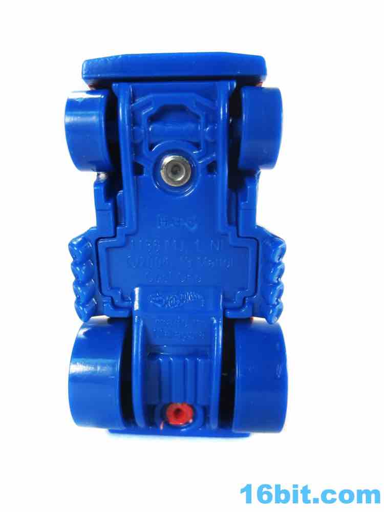 With huge back wheels cast in blue with yellow rims, this is a toy that looks a lot like "a toy." Terms like "kiddie" and "neon" are thrown out derisively by younger toy fans who don't seem to have yet connected with the reality of this hobby, and those terms seem to fit this particular vehicle more than the others Mattel pumps out. After all, bright primary colors aren't unusual but I can't name a lot of cars with garish rims and the (more or less) current logo for one of the most recognized characters in popular culture.