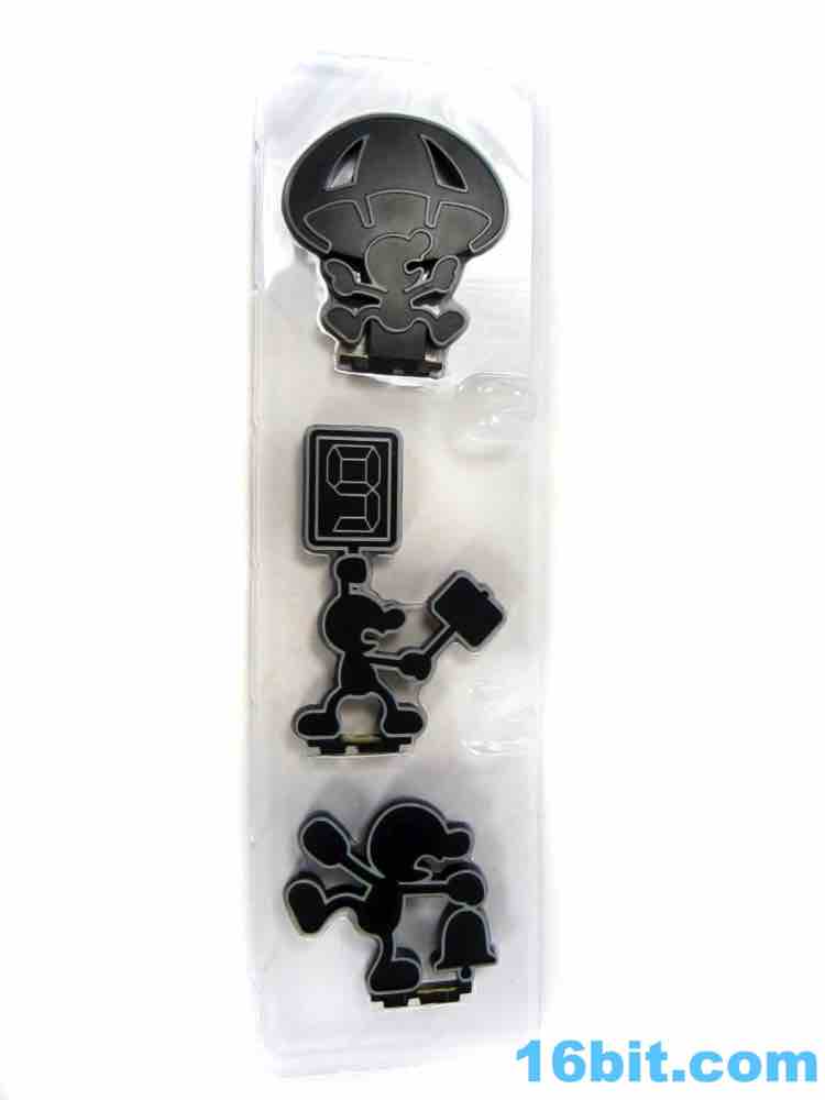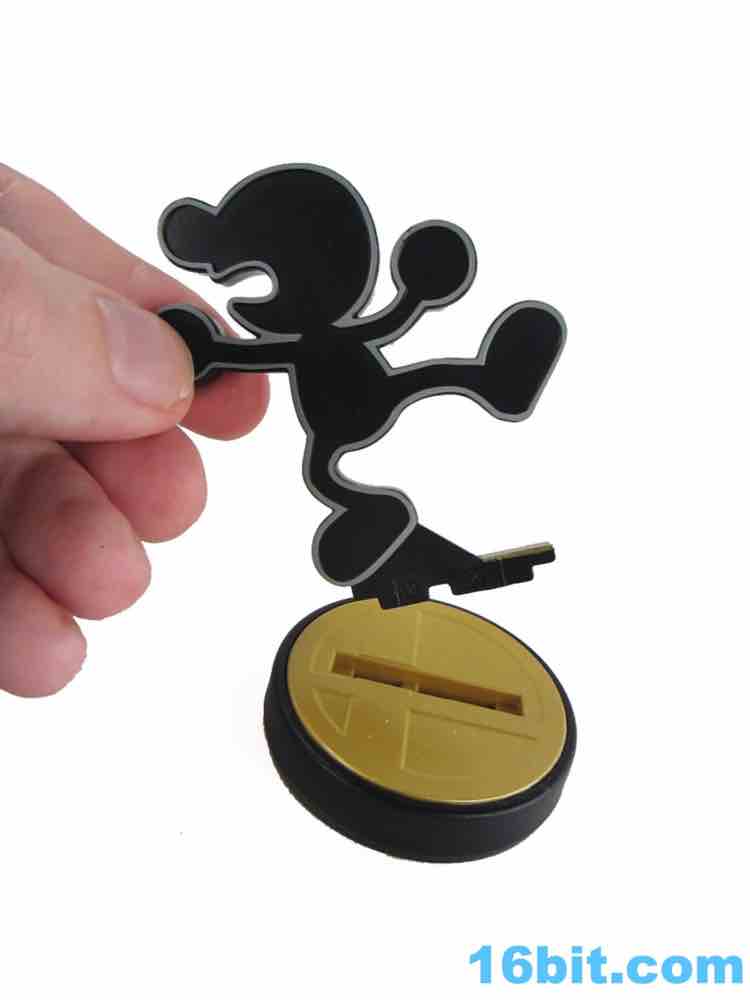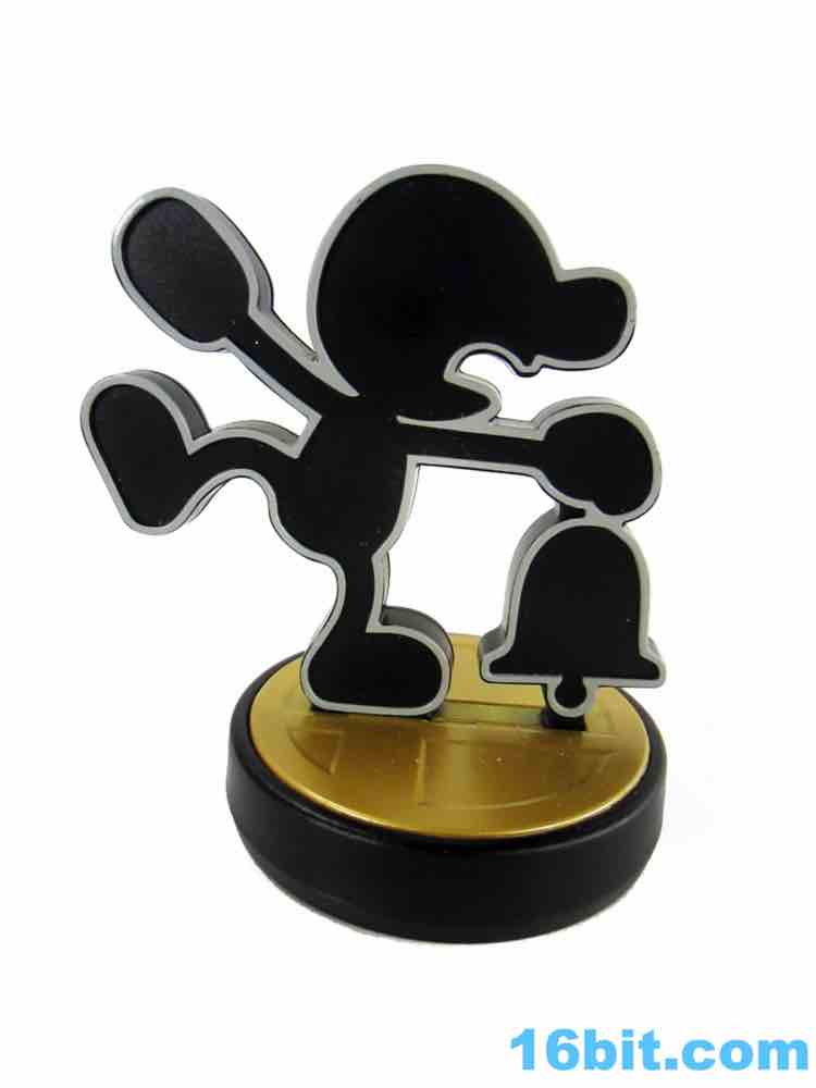 So let's get started with Mr. Game & Watch. Based on a series of LCD games that predated the original GameBoy by a few years, the little plastic stick man is what it is - basically a cookie cutter on a base. Thankfully Nintendo realized how boring a figure that was and gave us four options, but there's so little work being done here that pretty much anybody with minimal skill and a 3D printer could probably hash these out. The figures are molded in black with a light grey outline, and by default you have a frenzied figurine. You can swap that out for a parachute figure from Parachute, judge (from Judge), and bell (which I think is the Bell Bug but I don't have a complete set of these things). They're about 3-inches high, and with little paint or articulation are amusing mostly as a piece of Nintendo memorabilia for old-timers. I'd say "they'll never make another one like this!" but then someone will prove me wrong when the Smash Bros. choco toy sets come out in 2018.