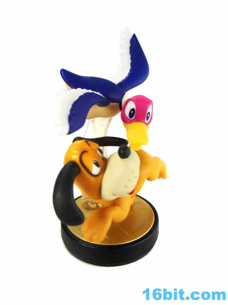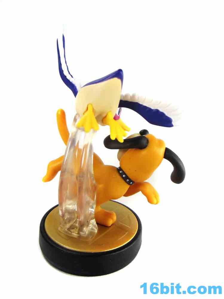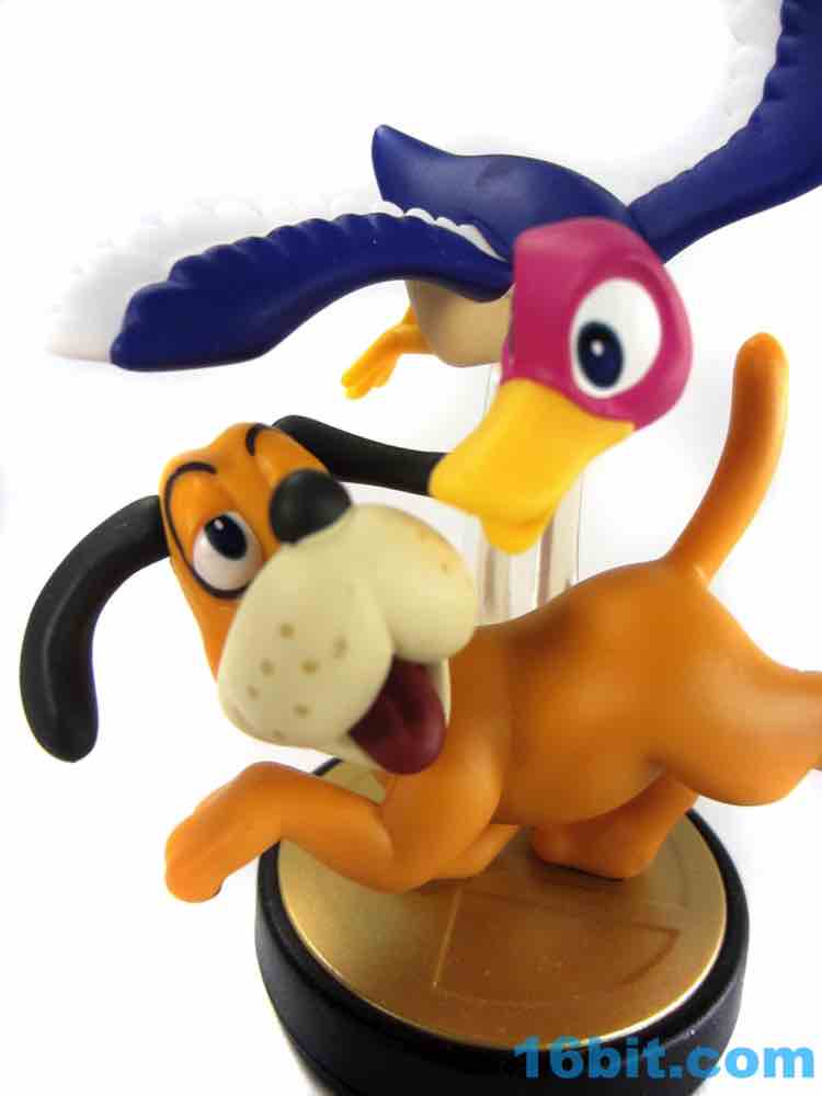 As for the dog - legendary mostly for laughing at you and people wanting to shoot it - it really doesn't have the feel of the classic NES game. Sure, it matches the in-game Smash Bros. art (as it should) but the sleepy-eyed, turned-around dog isn't the spot-on hunter we saw in the game. He is, though, well-designed. His paws have painted pads on the bottoms, while his eyes are outlined and feature multiple colors of paint. His collar has painted rivets, with his face sporting painted whisker dots. They didn't cheap out here, which is great to see. A clear base does what gravity don't, keeping both figures connected on a small display base. This isn't the only multi-figure Amiibo, but it does a good job capturing two of gaming's icons. I'd love to see (and would probably buy) a redeco with the duck in green and black, because that's the kind of person I am. I'm a huge fan of old Nintendo stuff and while I won't buy everything, you can bet your bottom dollar I'll pick up any fairly-priced piece of NEStolgia Nintendo puts on the market. Assuming I can find it at retail, that is.