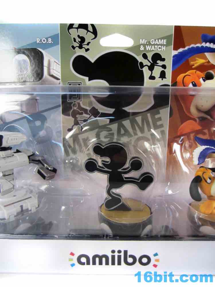 While not an instant sell-out, GameStop's exclusive R.O.B., Mr. Game & Watch, and Duck Hunt set got me to give them money for the first time in years - I'm still bitter over the debacle that was their Hasbro exclusive The Force Unleashed Stormtrooper Commander and how that was handled. I was fortunate this time, though, because a store checker let me know every GameStop near me had these on launch day and as of lunch I had my pick of stores to visit. $35 for 3 ain't bad, especially when you consider the Mr. Game & Watch Amiibo actually has four stick figures you can swap on the base.